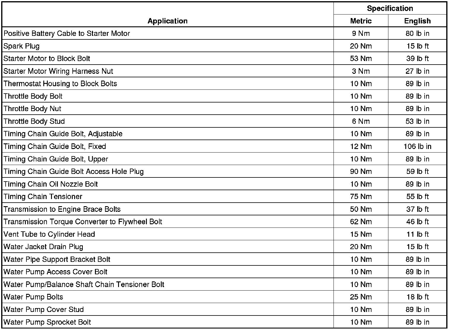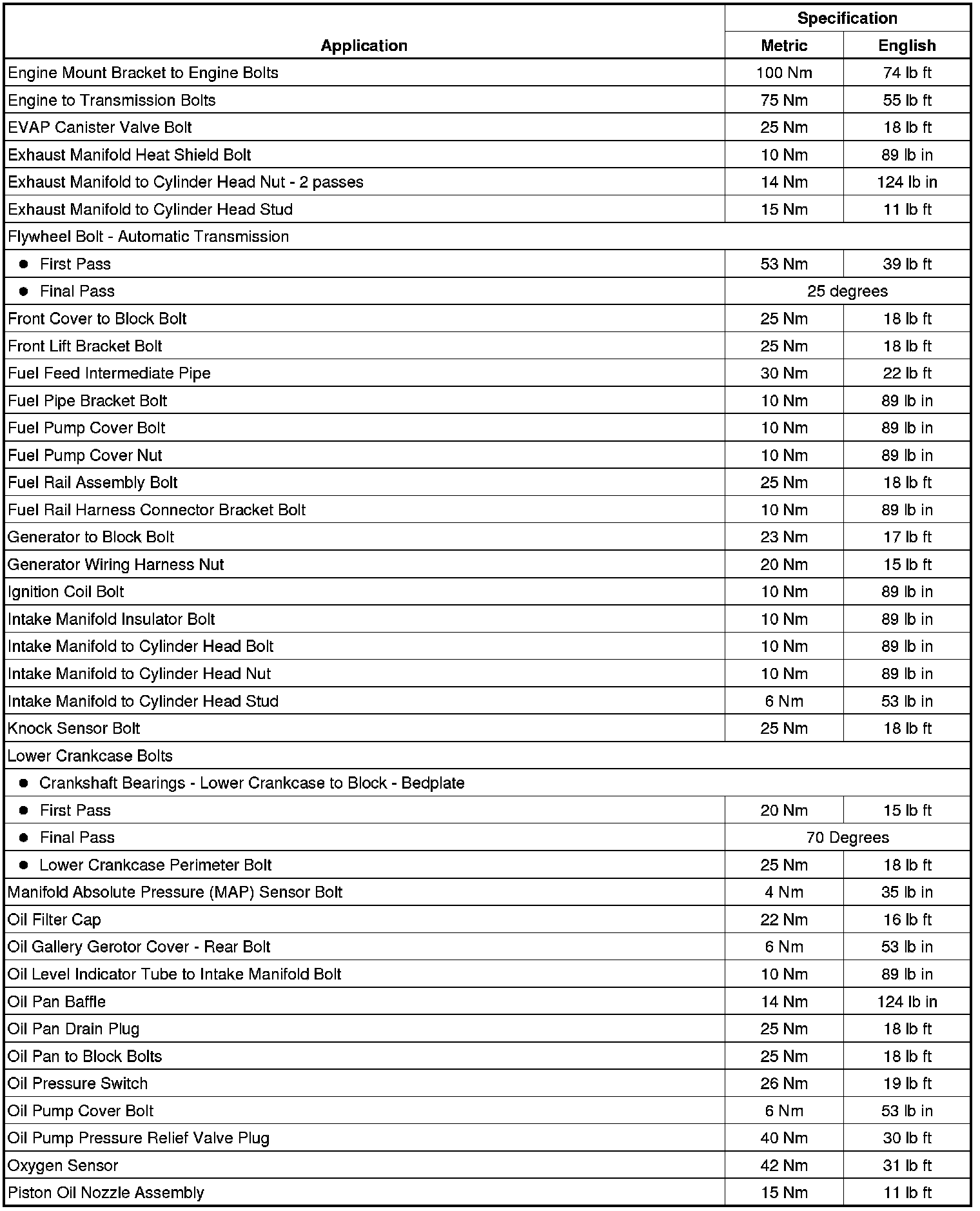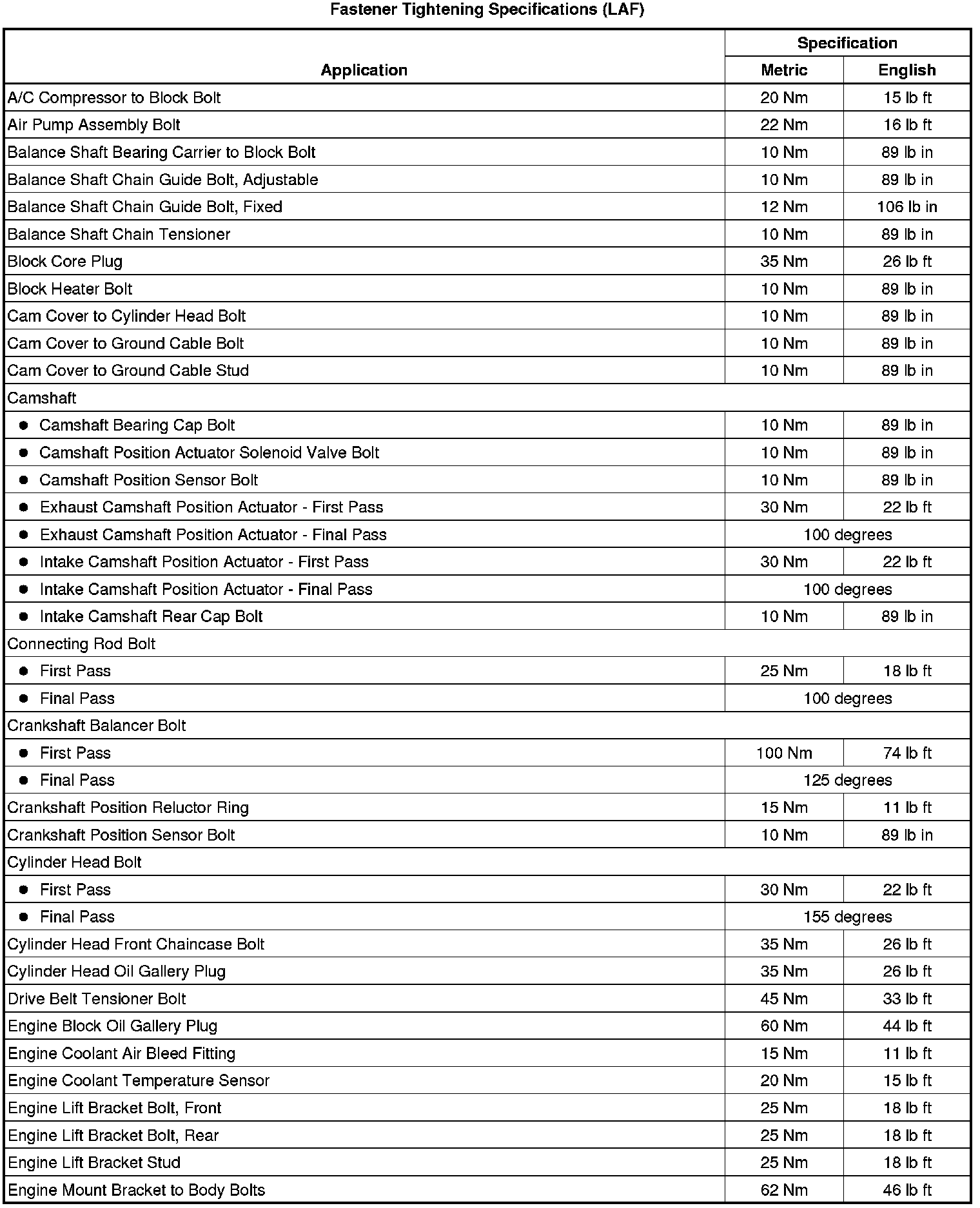 Fastener Tightening Specifications (LAF)