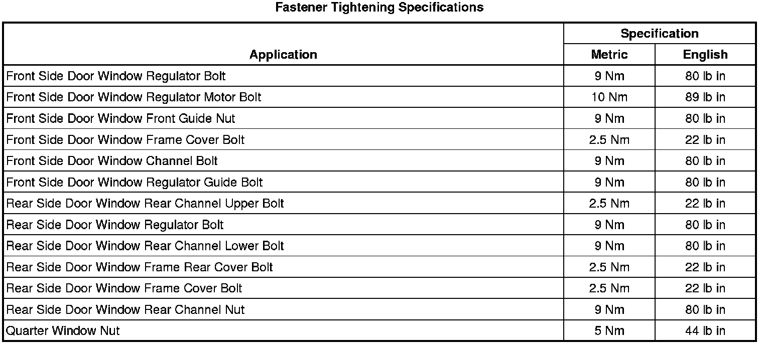 Fastener Tightening Specifications