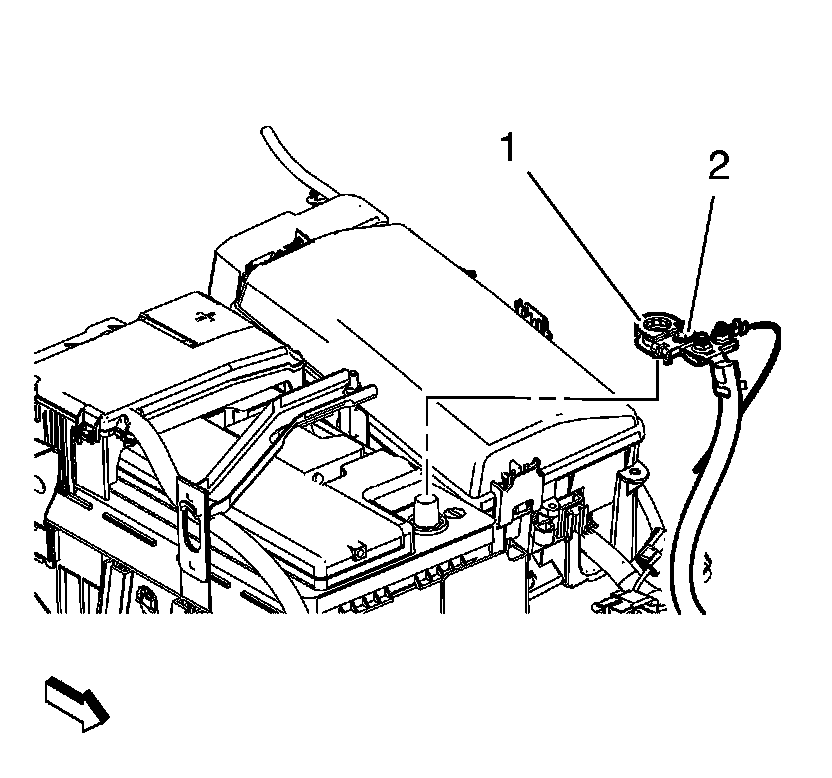 2. Fasten the battery negative cable nut (2) and tighten the nut to 4.5 Nm (40 lb in).