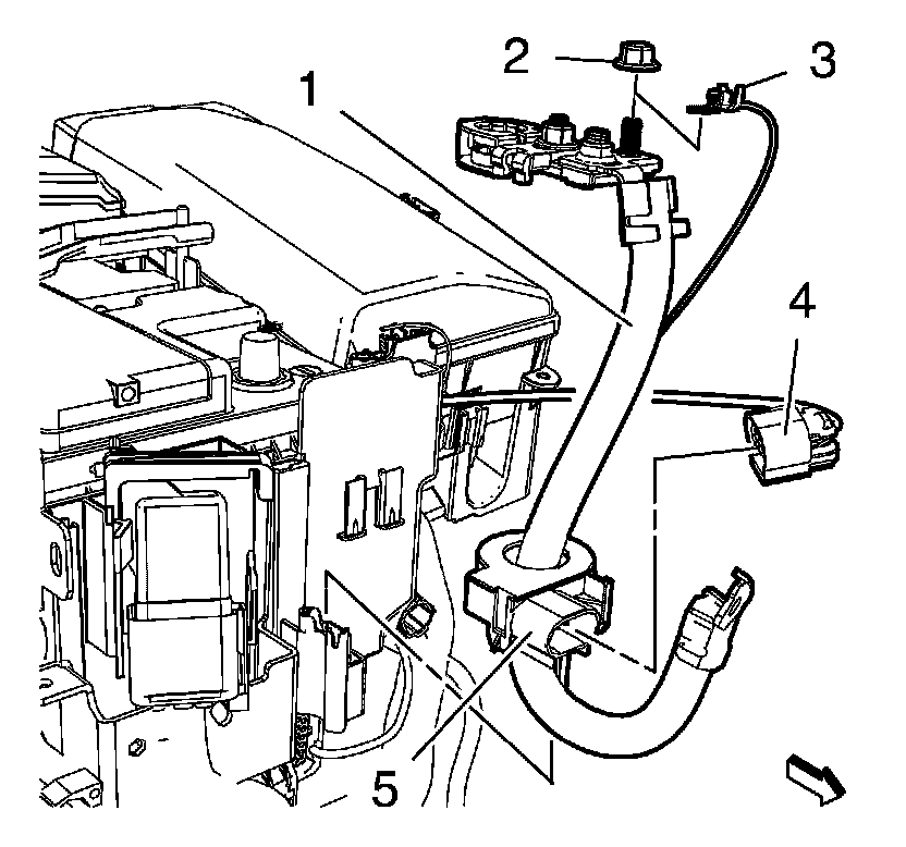 3. Remove the negative cable (2).