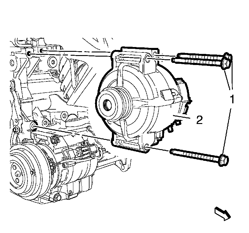 2. Install the 3 generator bolts (1) and tighten to 22 Nm (16 lb ft).