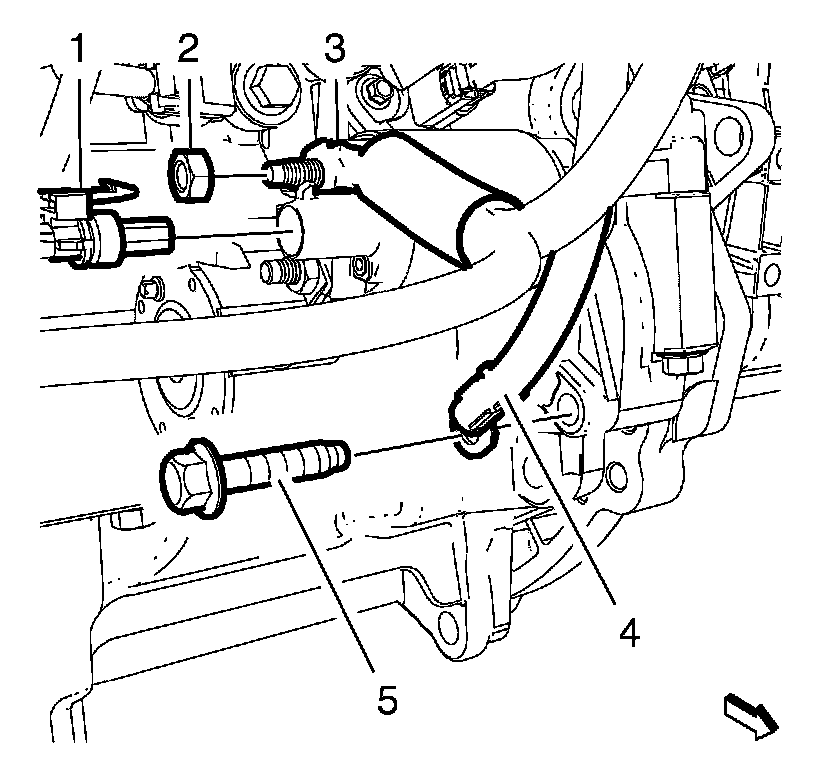 5. Remove the starter bolt (5) and the starter ground cable (4).
