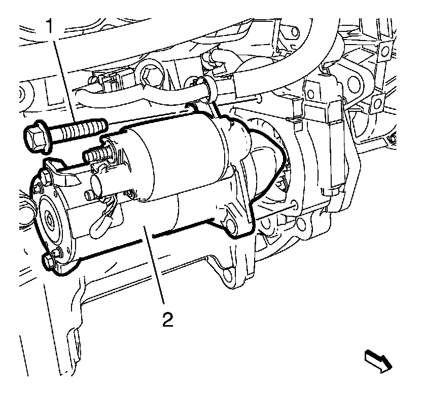 2. Install the starter bolt (1) and tighten to 58 Nm (43 lb ft).