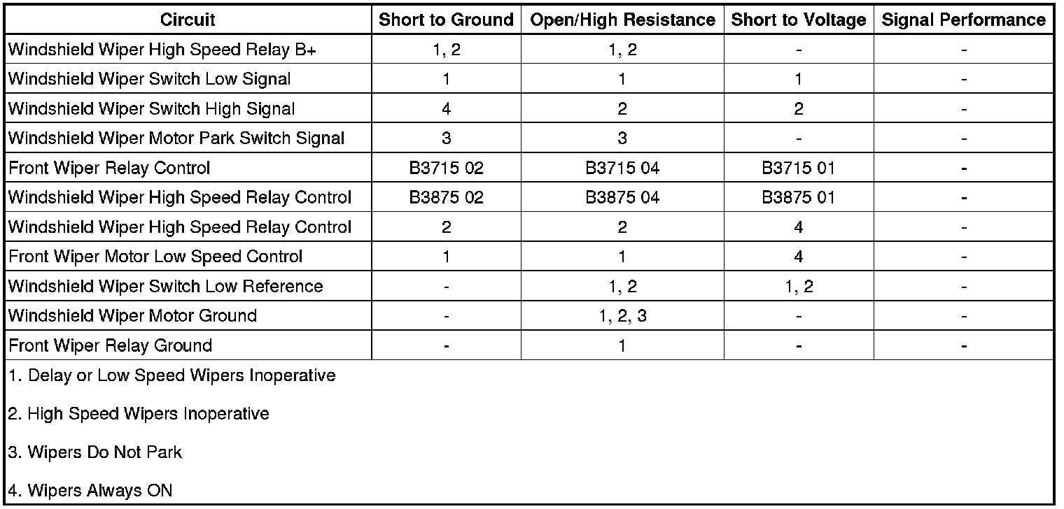 • If greater than the specified range, test or replace the KR12B Windshield Wiper Relay.
