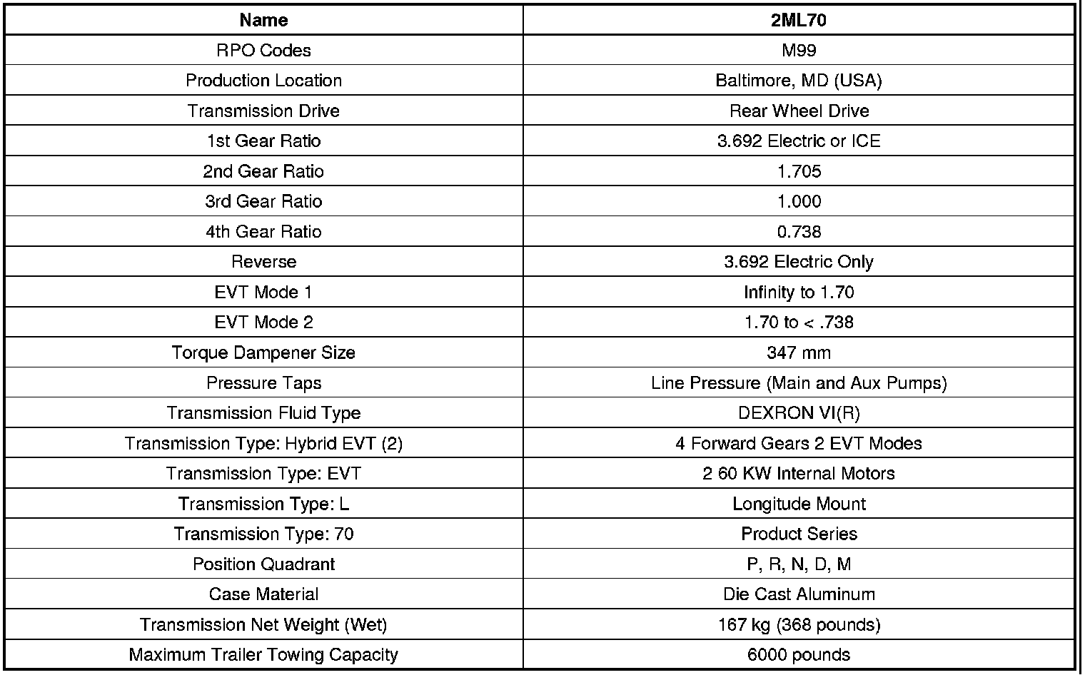 Transmission General Specifications