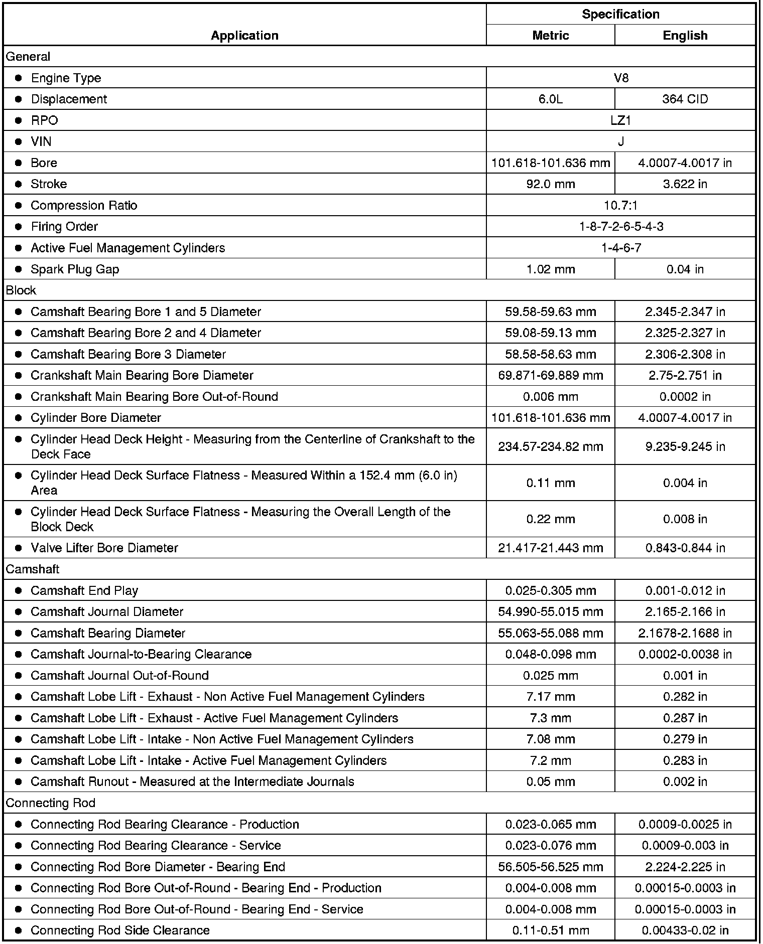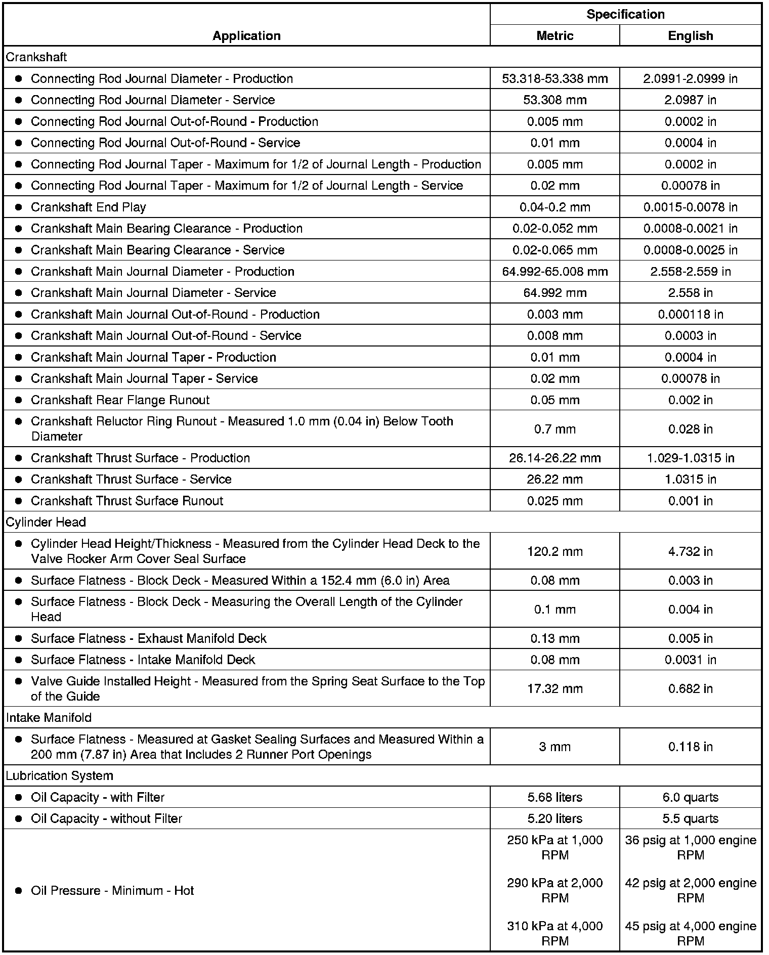Engine Mechanical Specifications