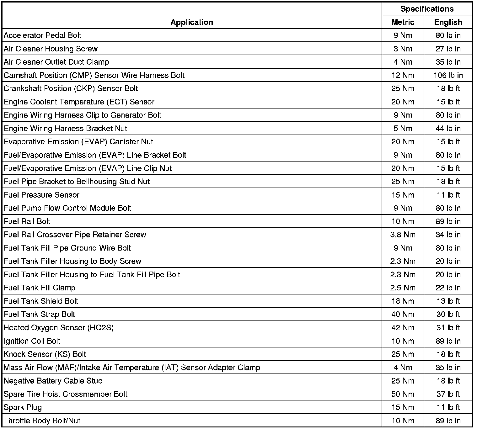 Fastener Tightening Specifications