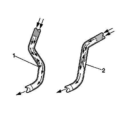 7. If any of the flexible brake hoses were found to have soft spots (2), then the identified flexible brake hose, or hoses require replacement.