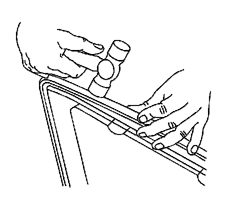 2. Position the sunroof window panel seal onto the window frame, locating the starting end of the seal at the relief notch in the center of the passenger side of the frame.