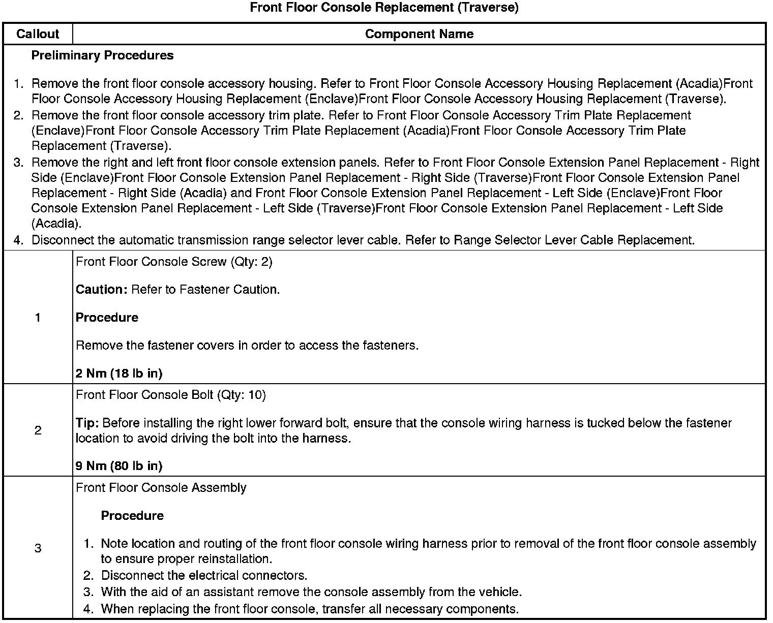 Front Floor Console Replacement (Traverse)