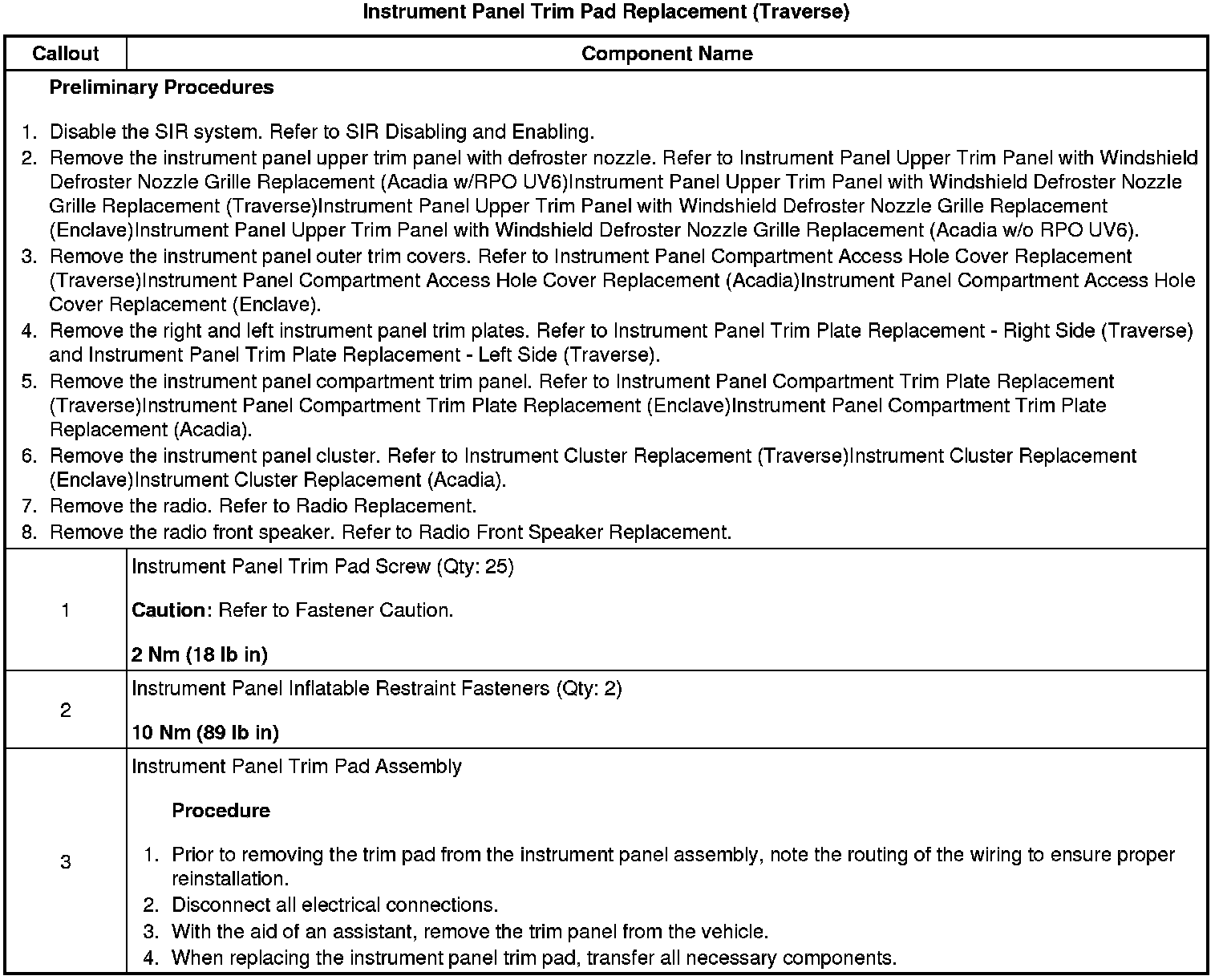 Instrument Panel Trim Pad Replacement (Traverse)