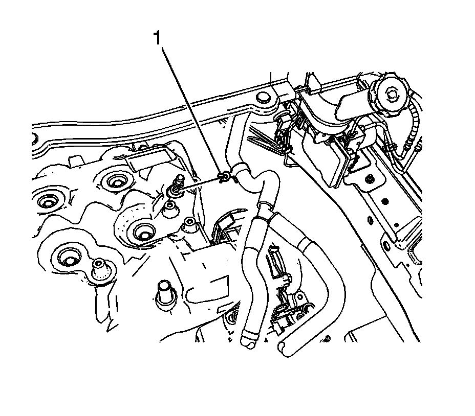 5. Release the vacuum hose routing clip (1) from the intake manifold ball stud.