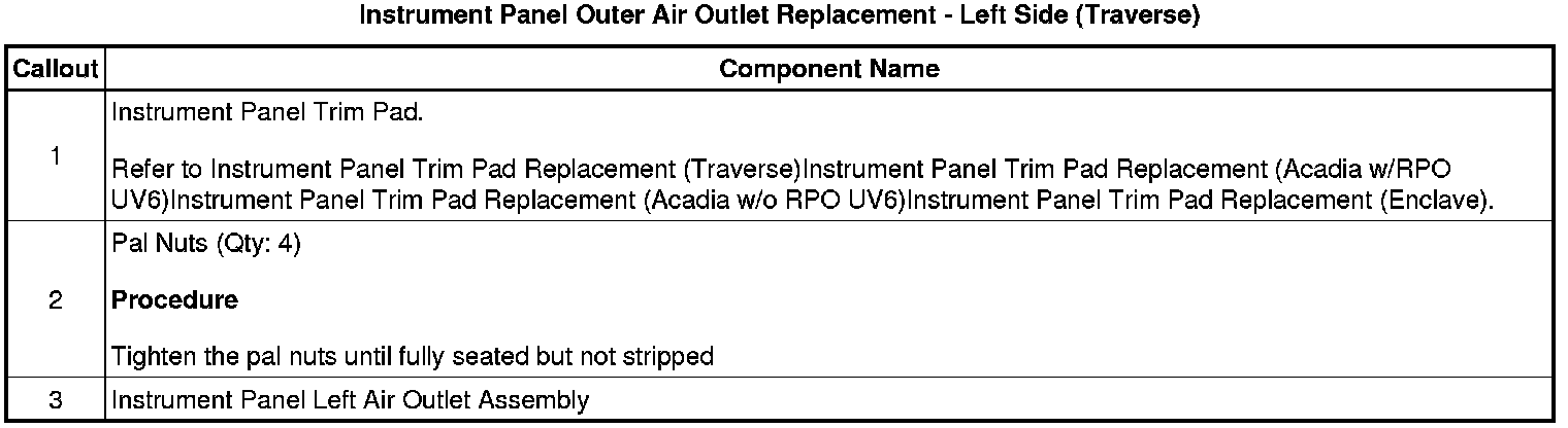 Instrument Panel Outer Air Outlet Replacement - Left Side (Traverse)