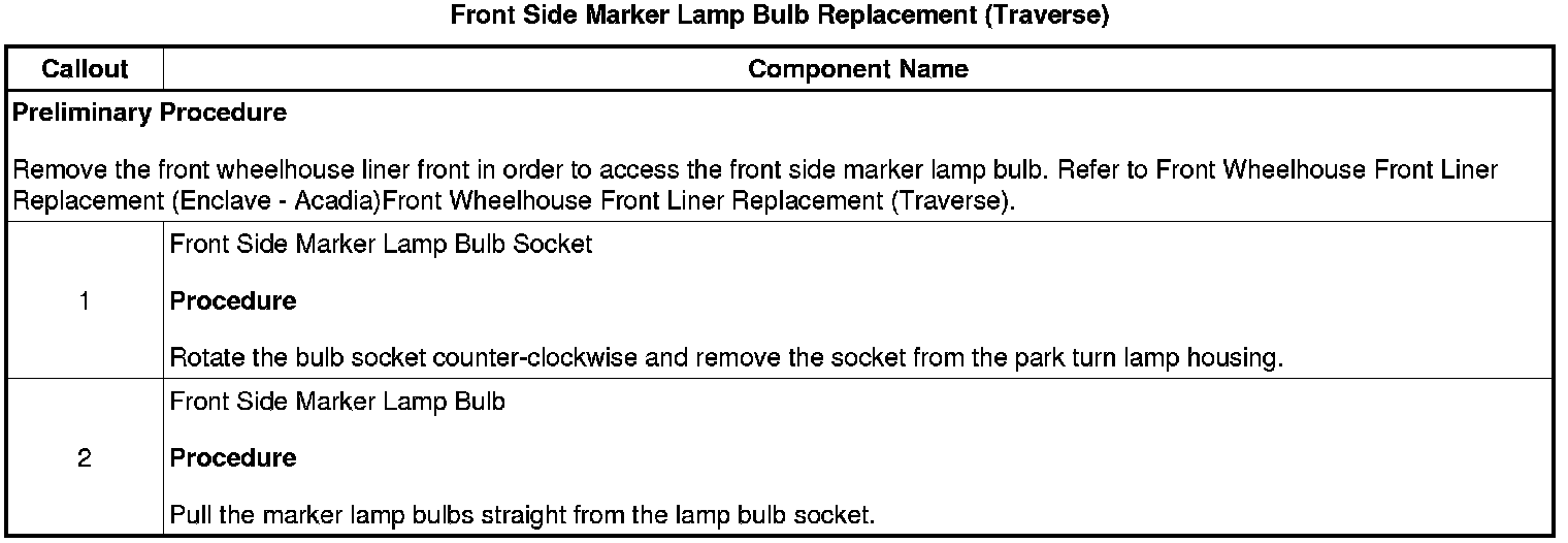 Front Side Marker Lamp Bulb Replacement (Traverse)