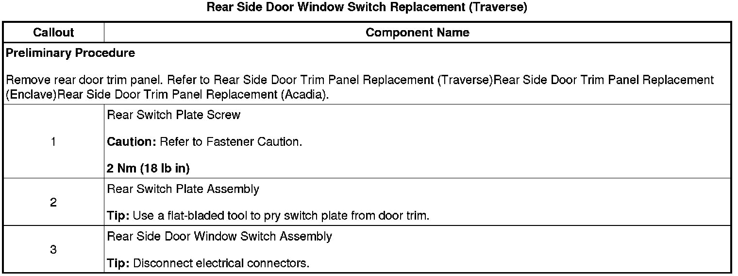 Rear Side Door Window Switch Replacement (Traverse)