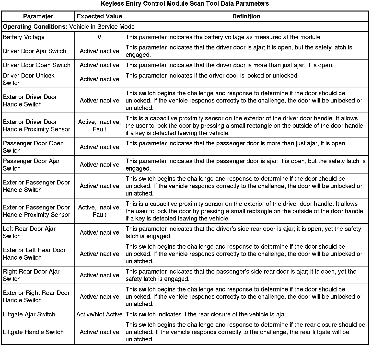 Control Module Scan Tool Information