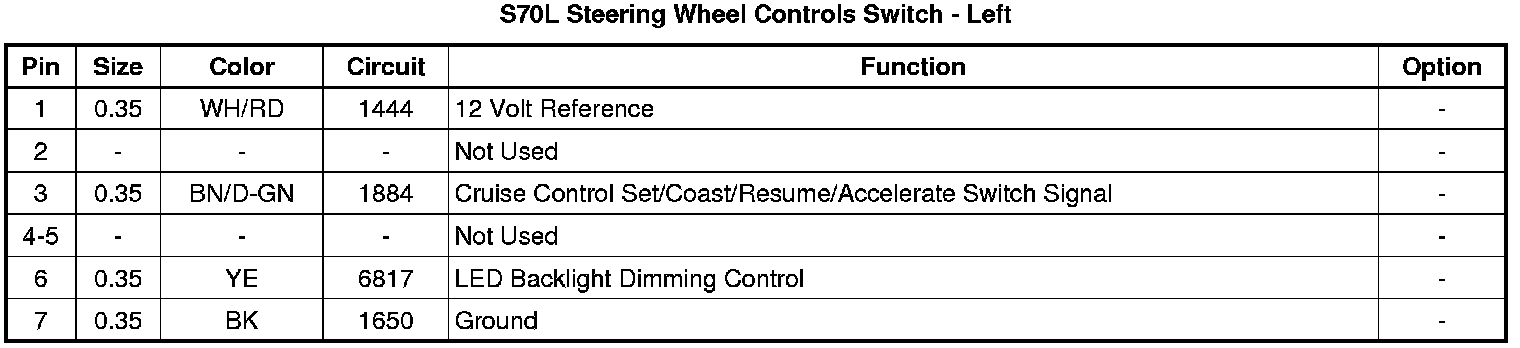S70L Steering Wheel Controls Switch - Left