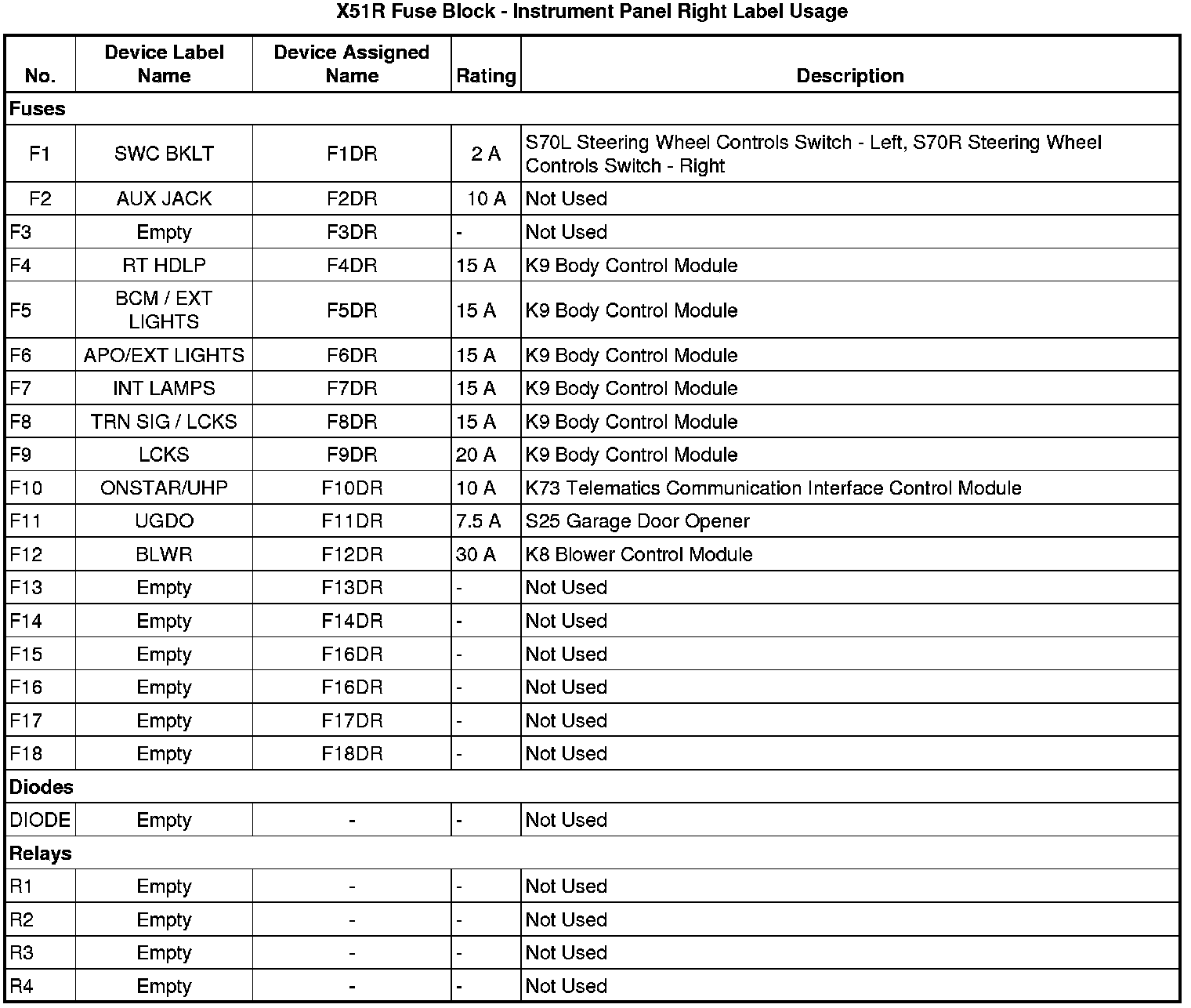 X51R Fuse Block - Instrument Panel Right Label