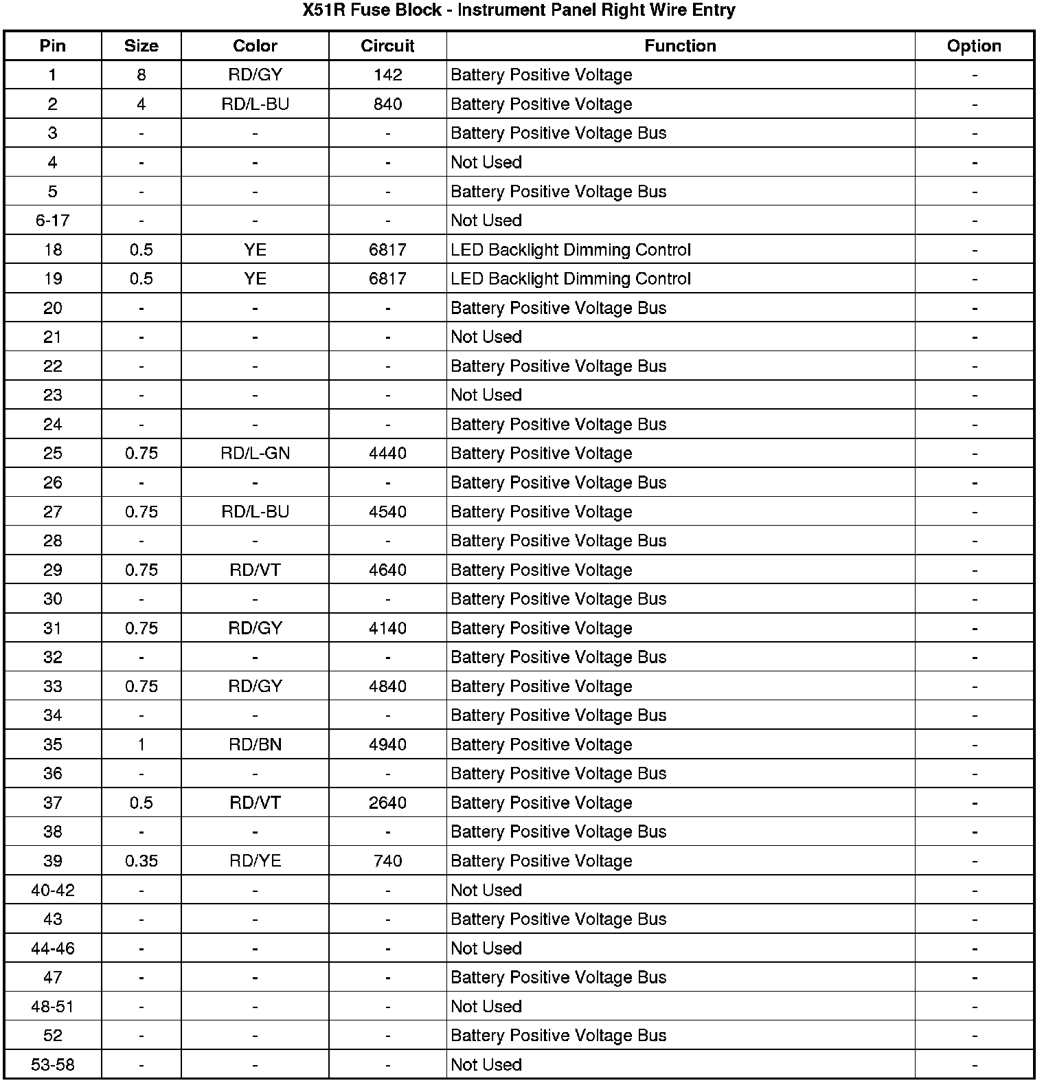X51R Fuse Block - Instrument Panel Right Wire Entry