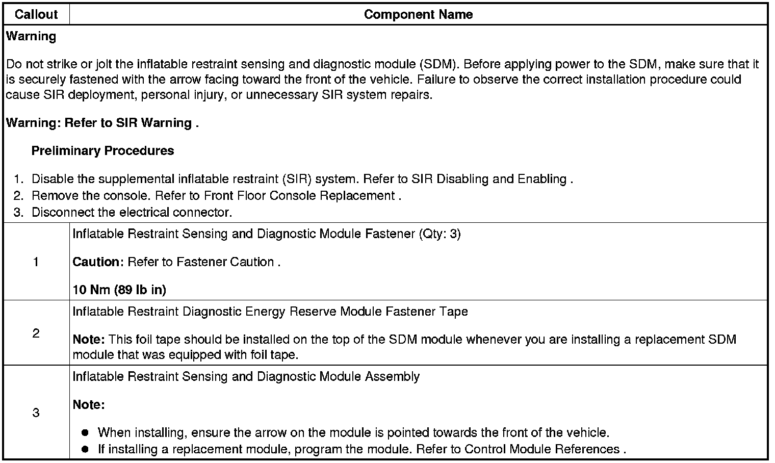 Inflatable Restraint Sensing and Diagnostic Module Replacement