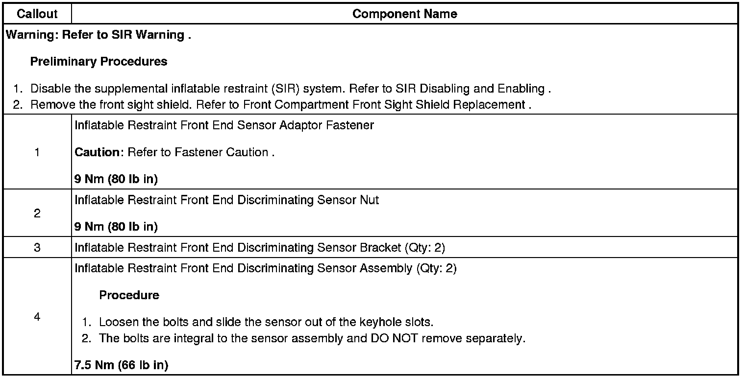 Front End Inflatable Restraint Discriminating Sensor Replacement