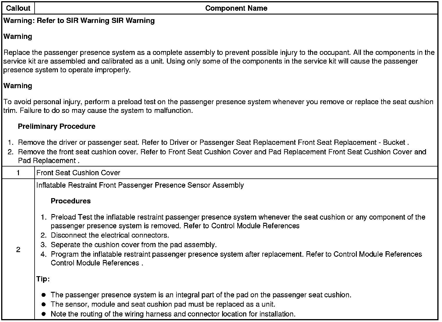 Inflatable Restraint Front Passenger Presence Sensor Replacement