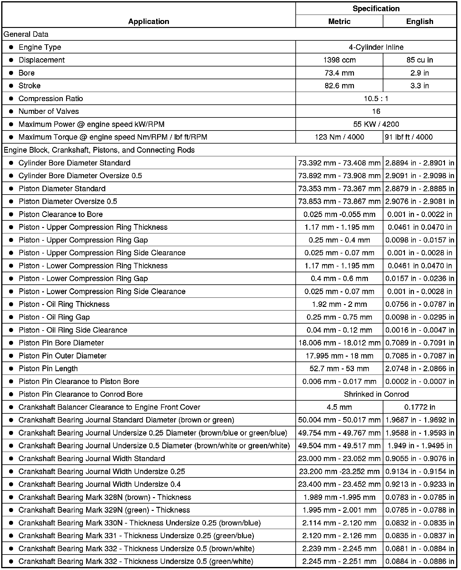Engine Mechanical Specifications