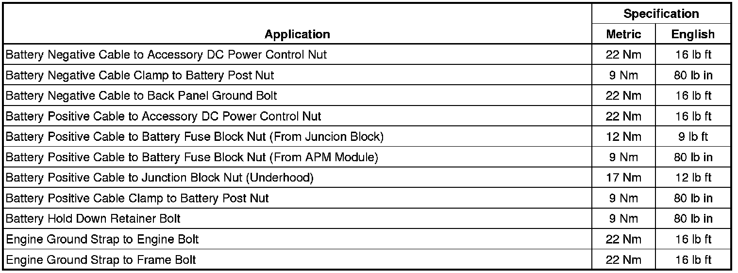 Starting and Charging: Specifications
