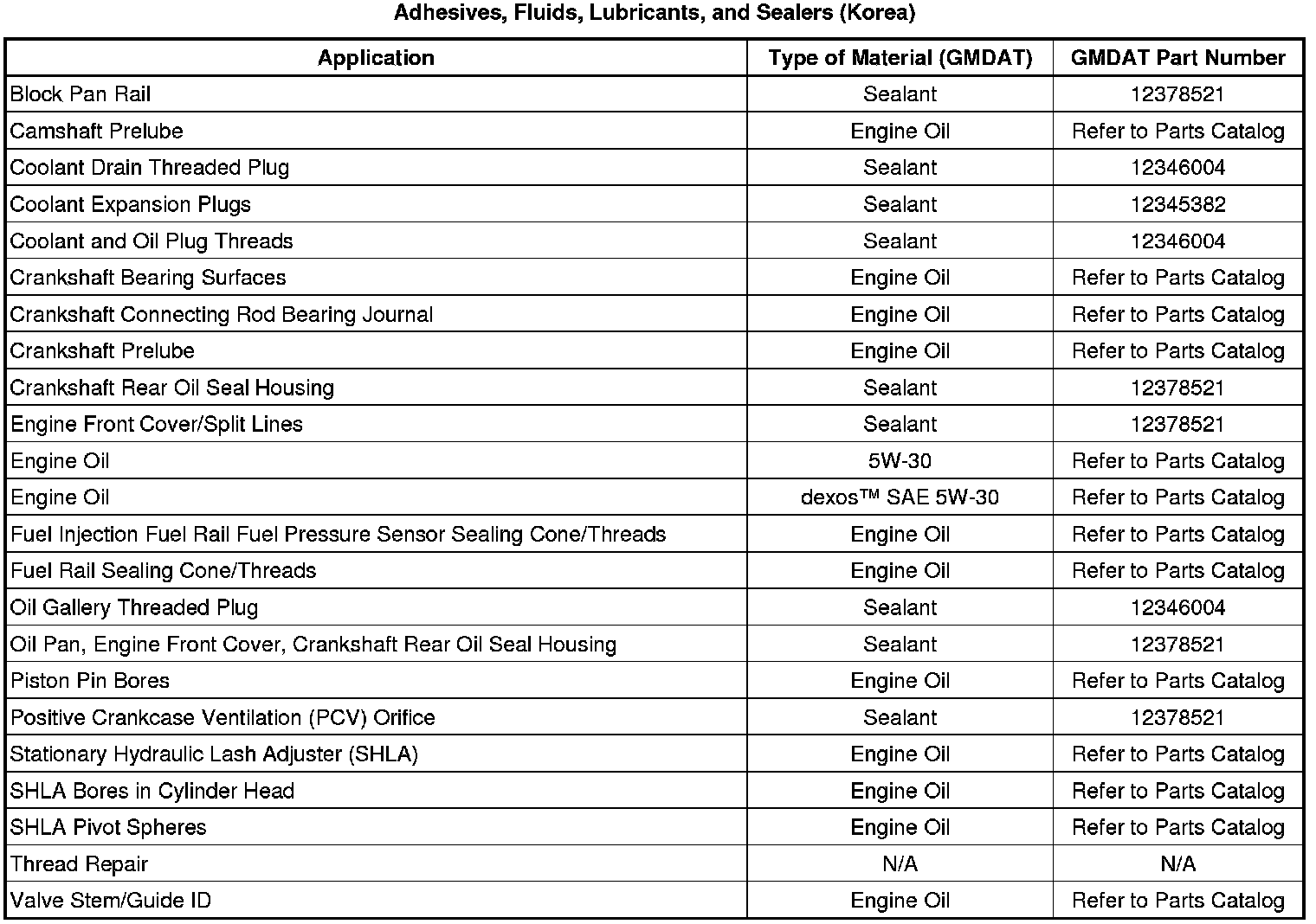 Adhesives, Fluids, Lubricants, and Sealers (Korea)