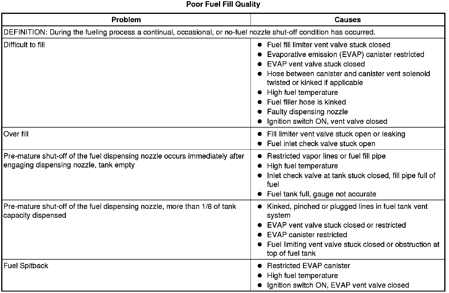 Poor Fuel Fill Quality
