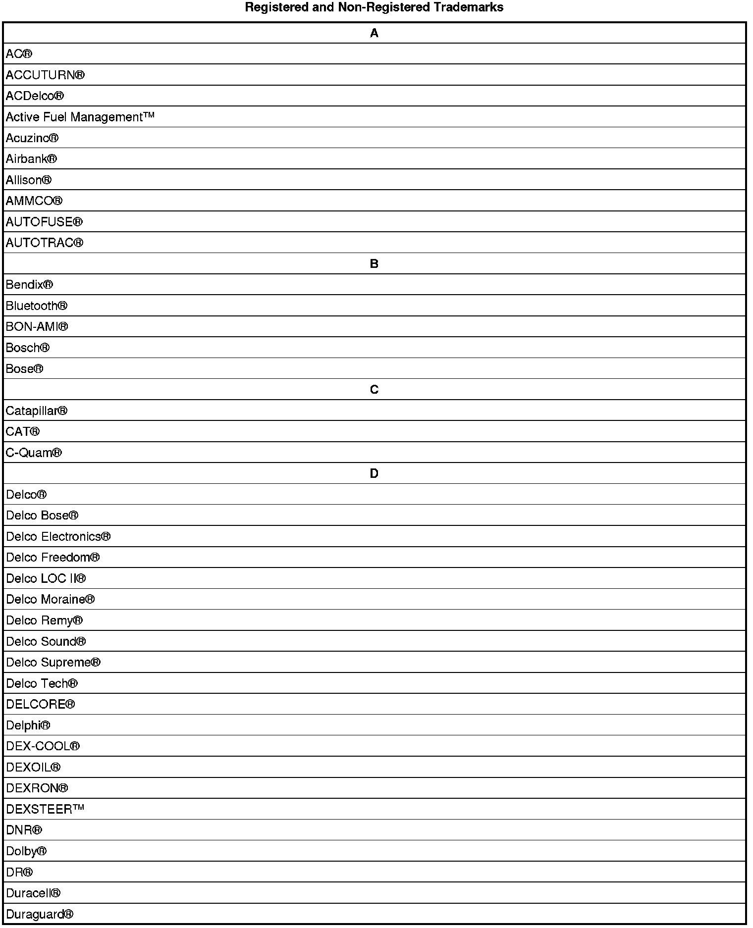 Listed below are Registered Trademarks ((R)) or Non-Registered Trademarks ((TM)) which may appear in this service manual.