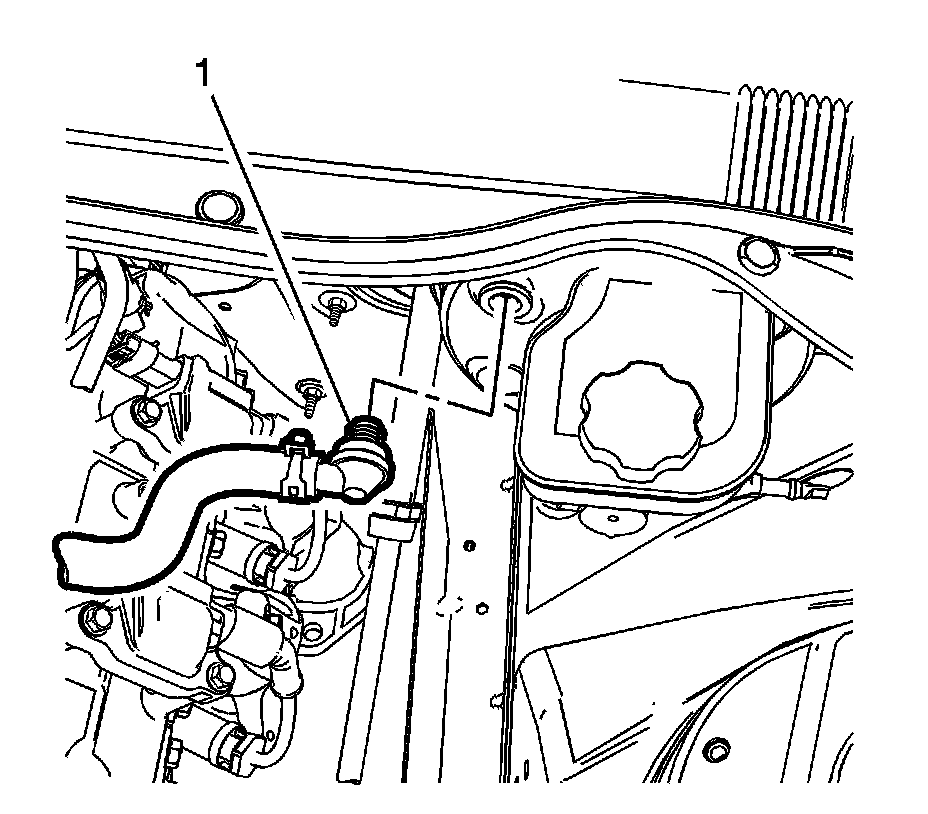 7. Release the clamp and remove the vacuum check valve (1) from the power brake booster vacuum hose.
