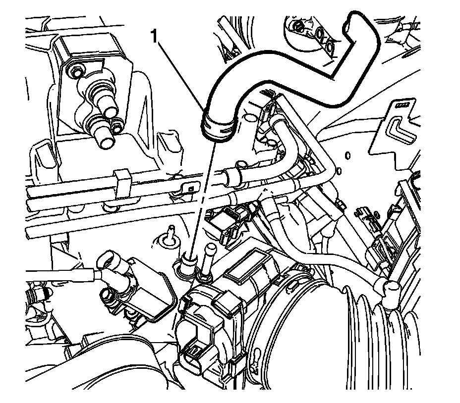 5. Release the clamp and disconnect the power brake booster vacuum hose (1) from the intake manifold vacuum port.