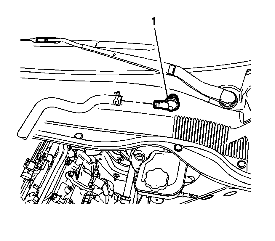 4. Install the power brake booster vacuum hose and check valve assembly (1) to the power vacuum brake booster.