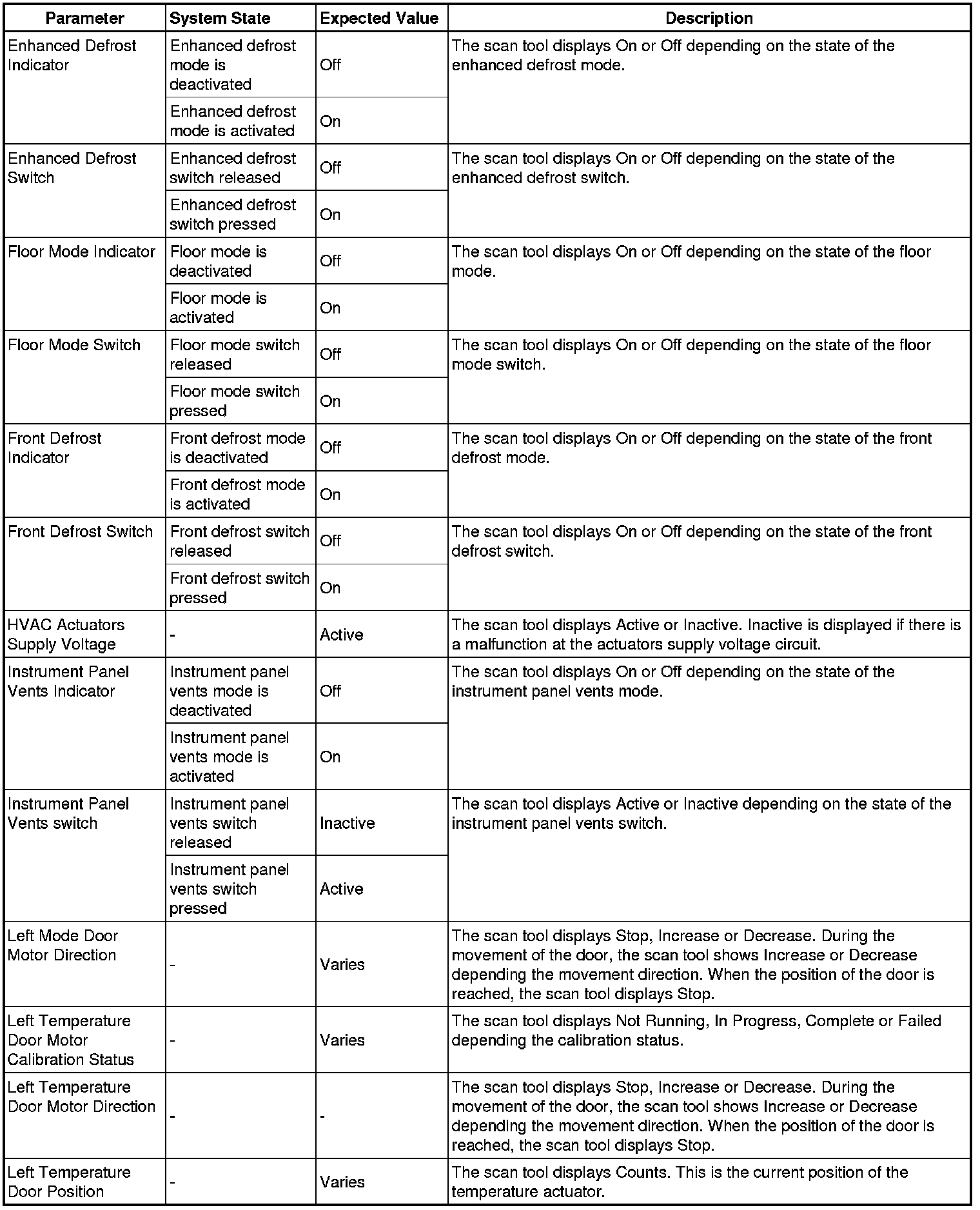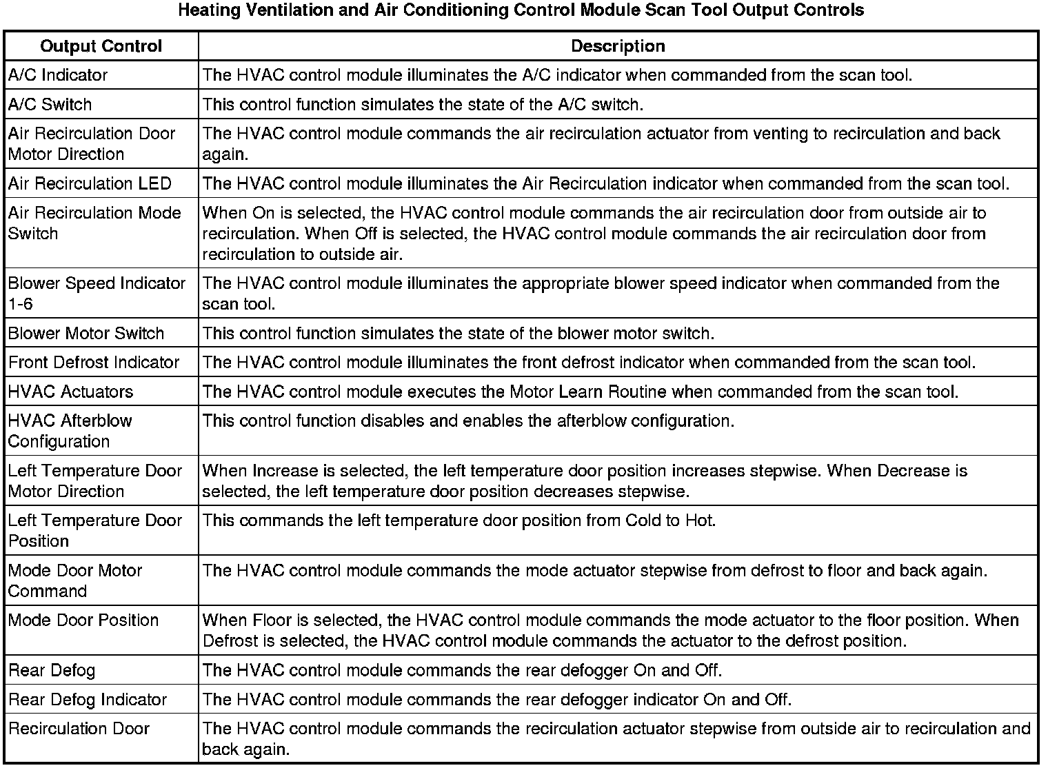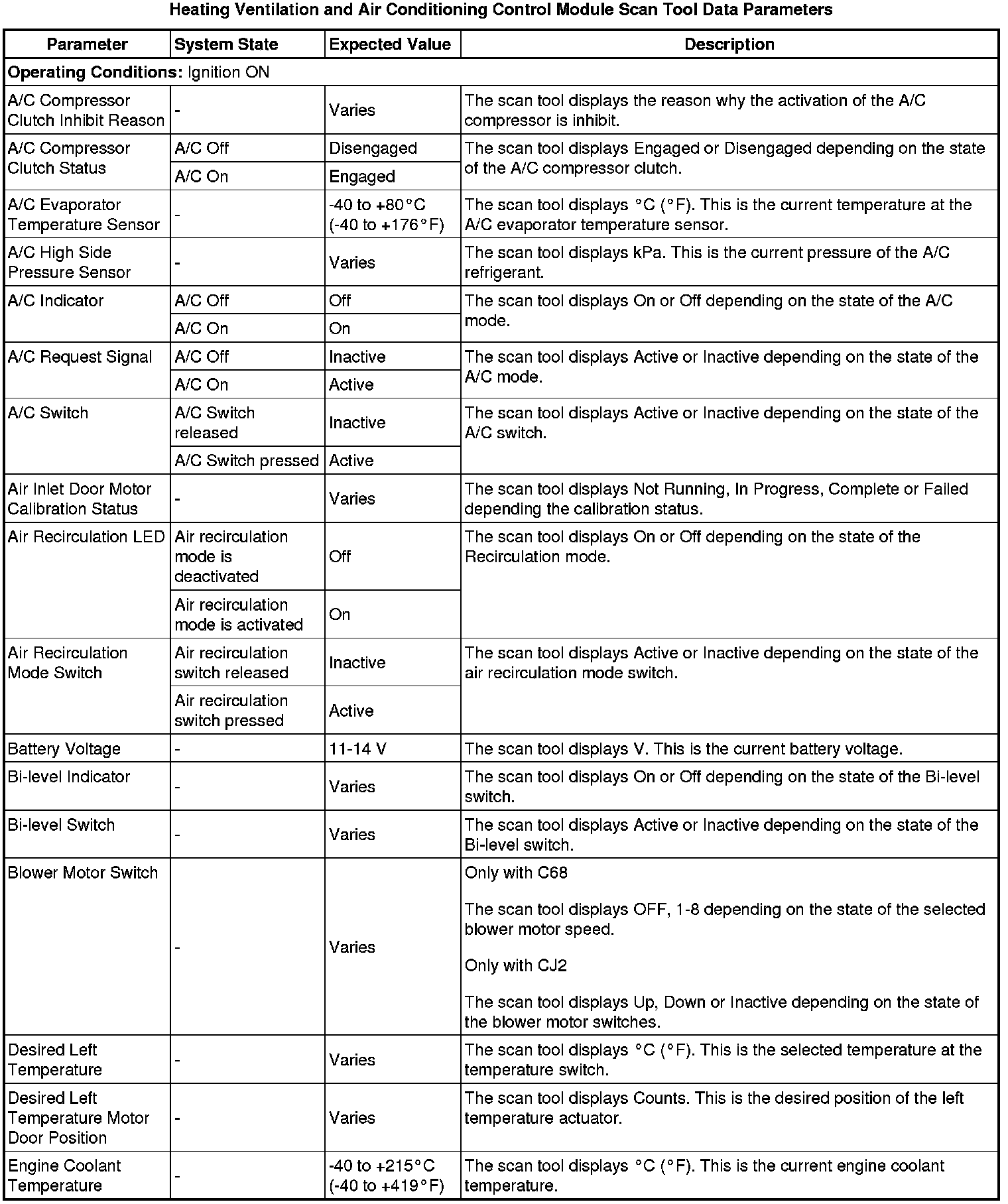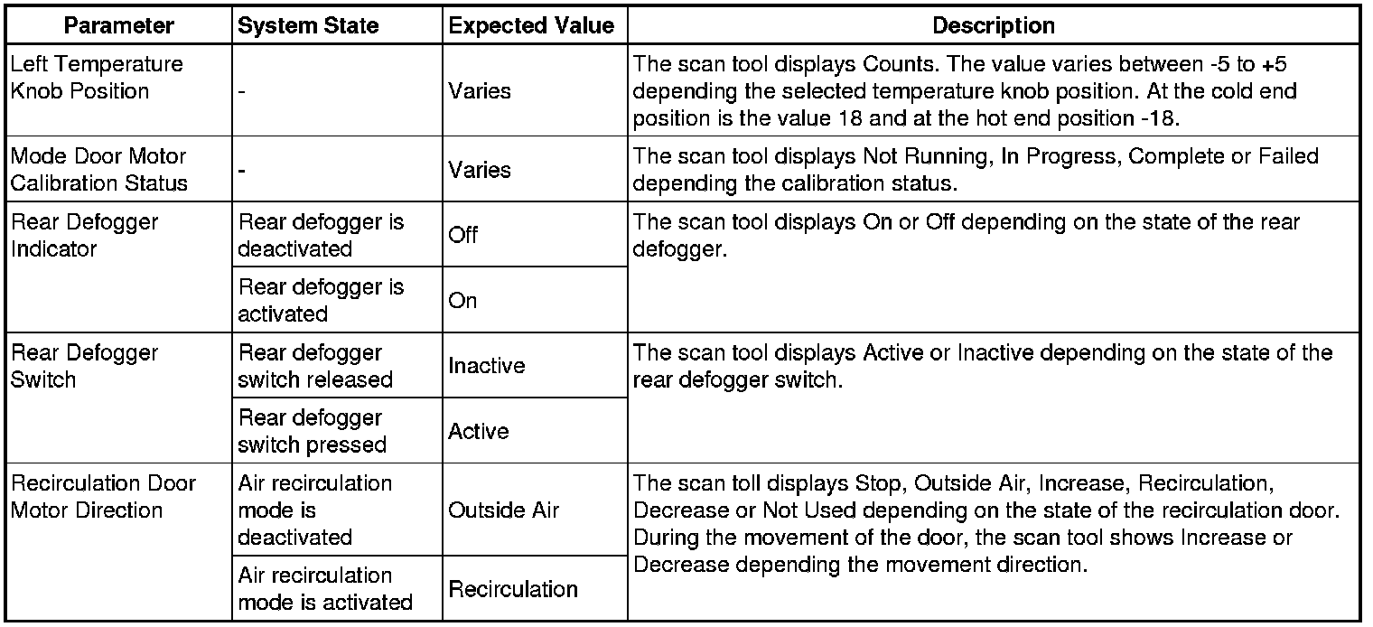Heating, Ventilation and Air Conditioning Control Module Scan Tool Information
