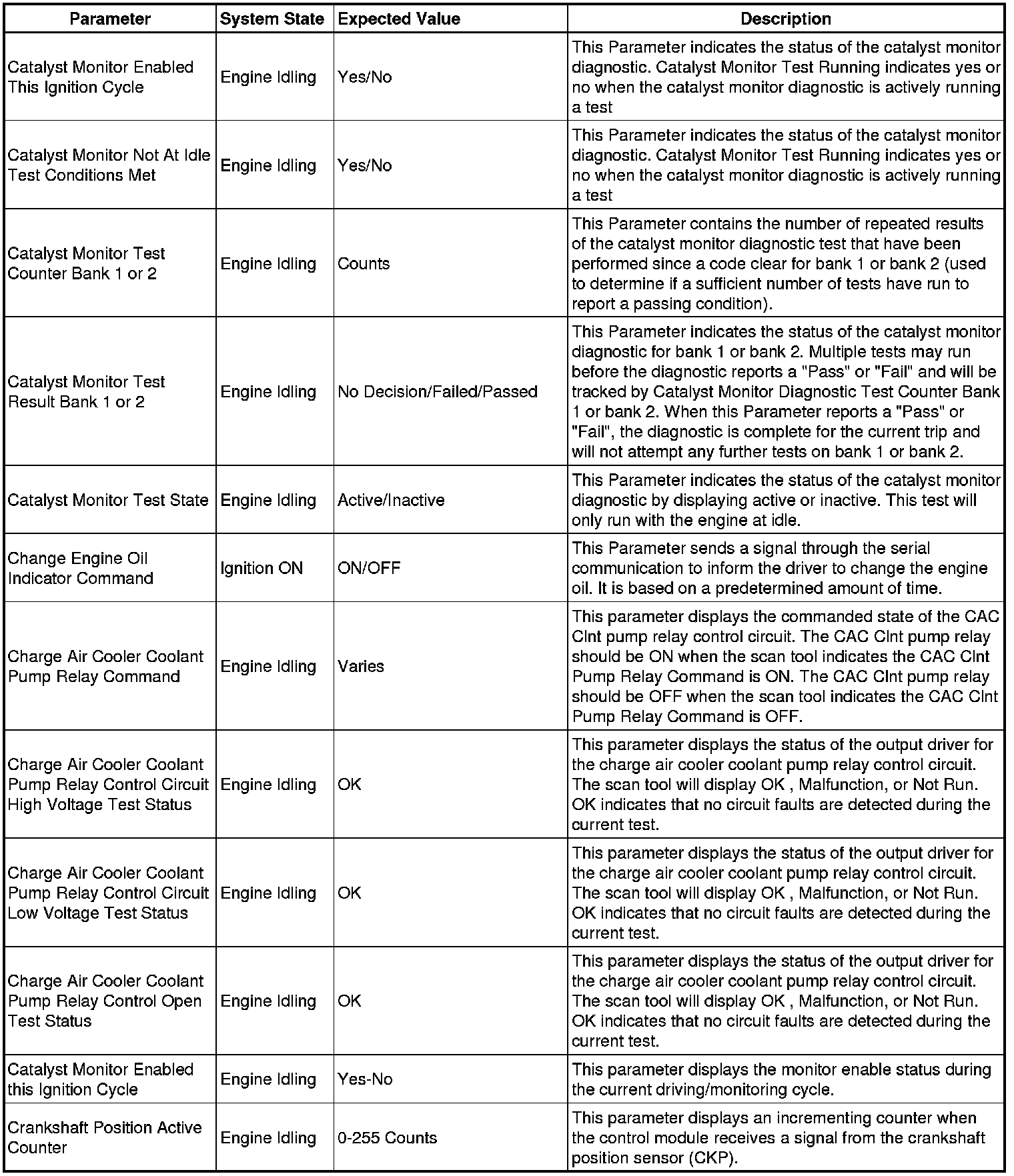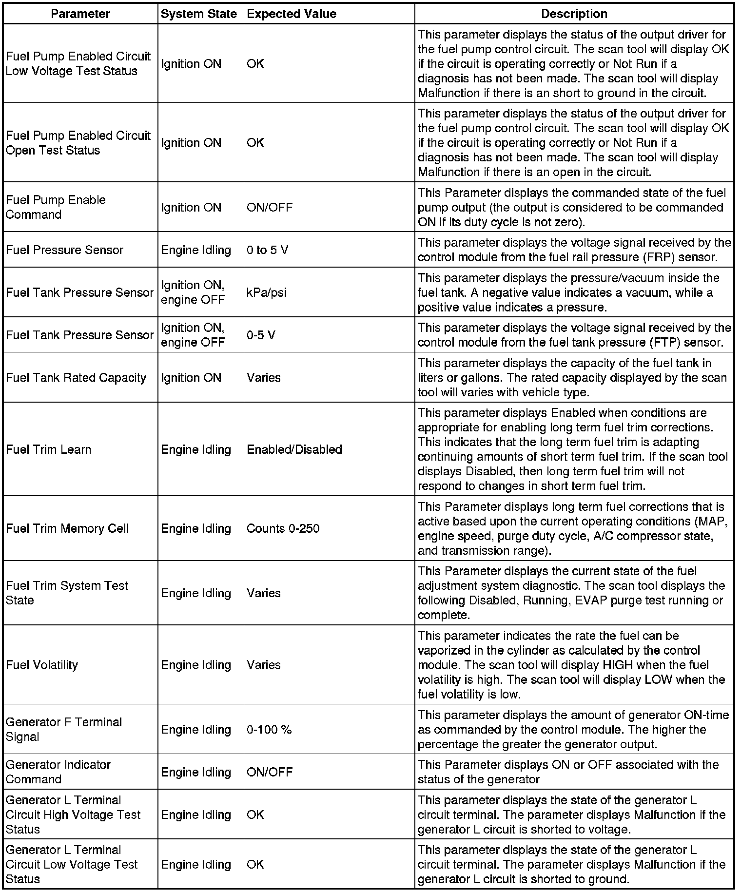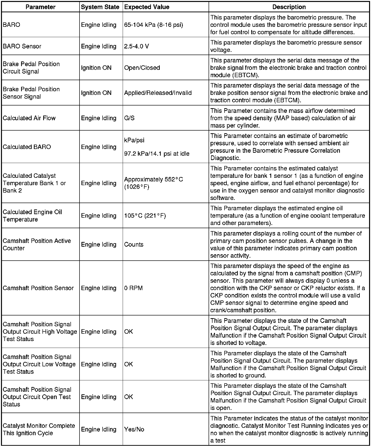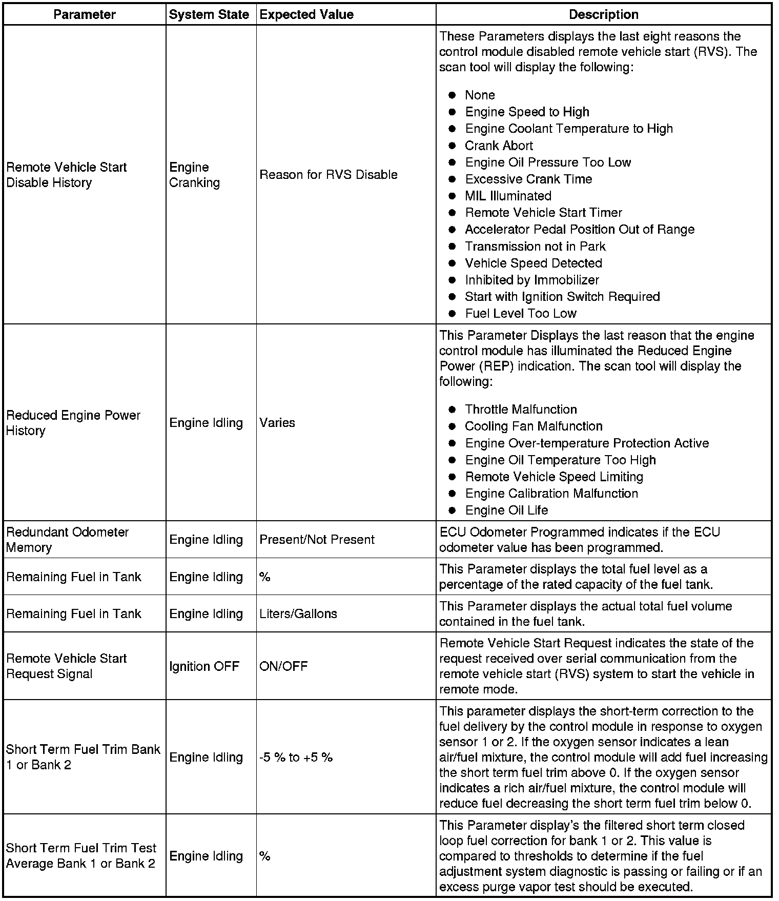 The Engine Control Module Scan Tool Data List contains all engine-related parameters that are available on the scan tool. The list is arranged in alphabetical order. A given parameter may appear in any one of the data lists, and in some cases may appear more than once, or in more than one data list in order to group certain related parameters together.