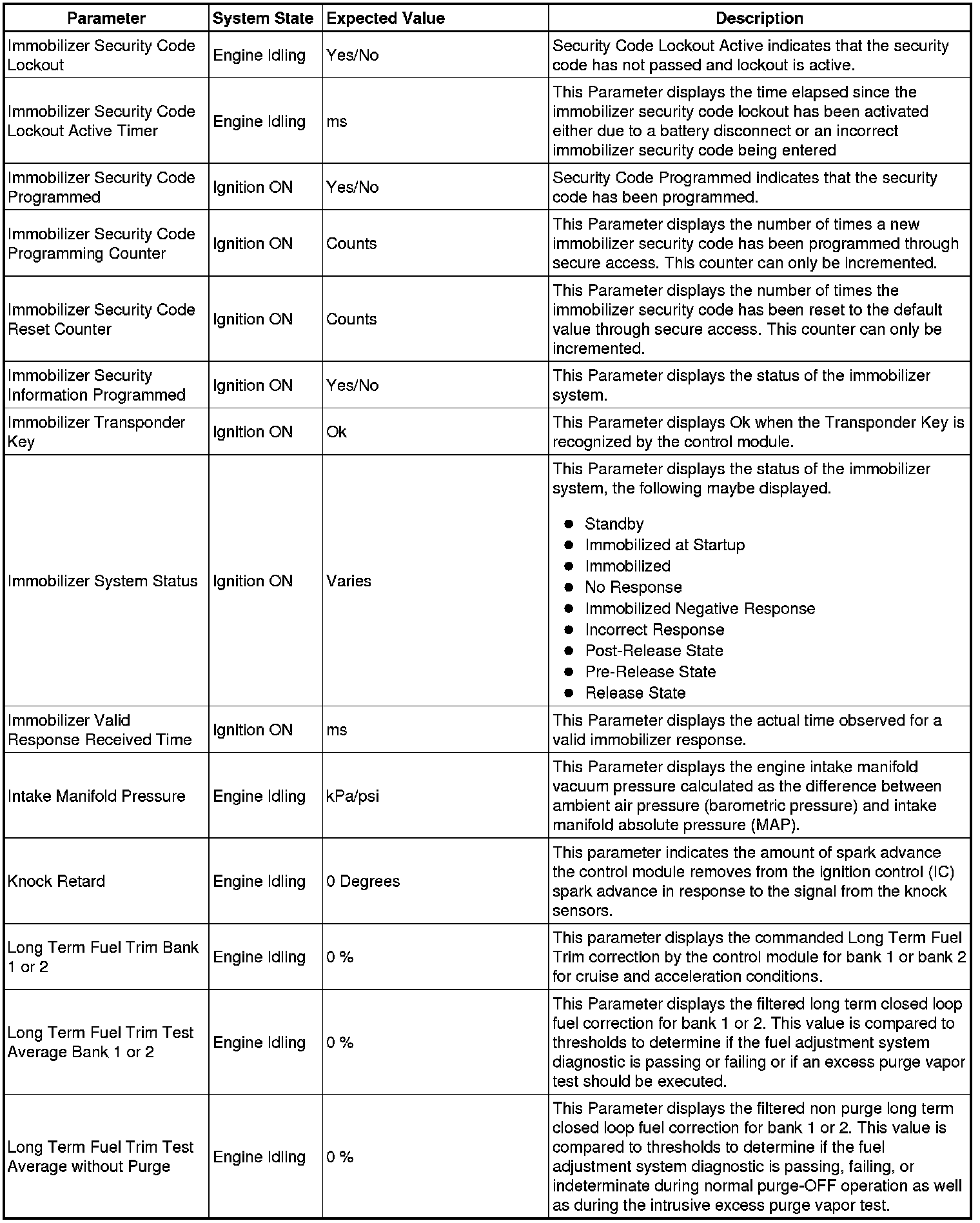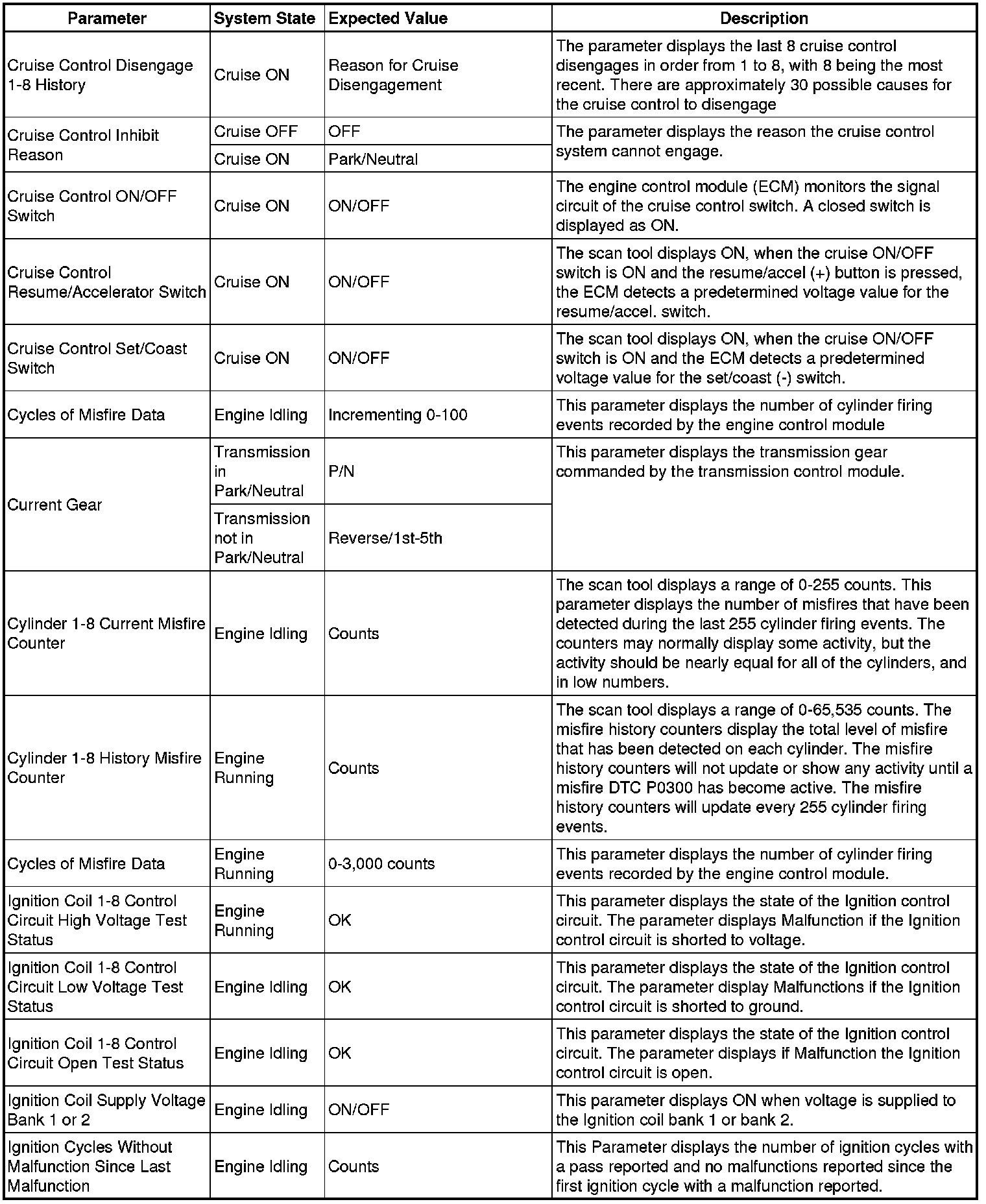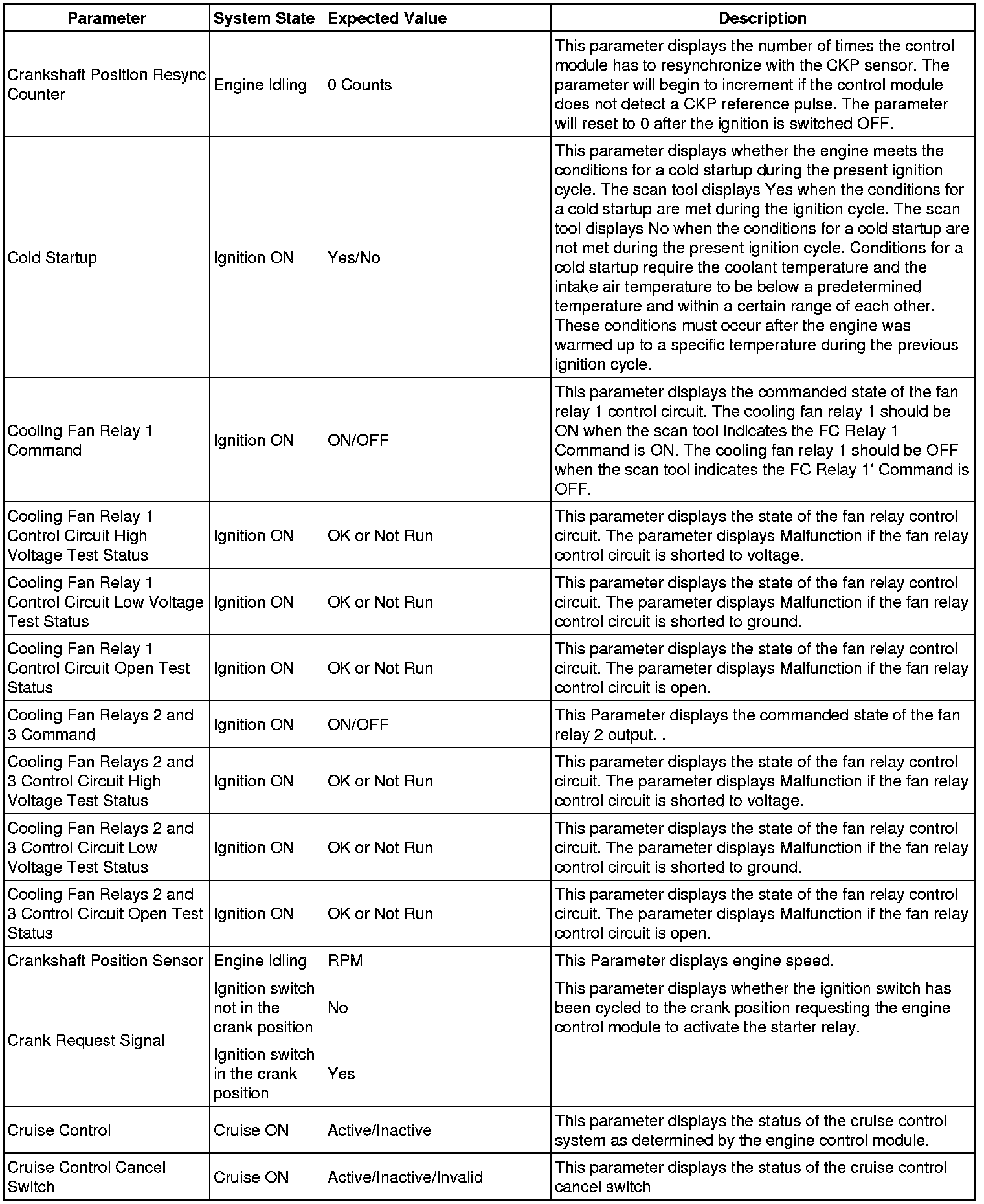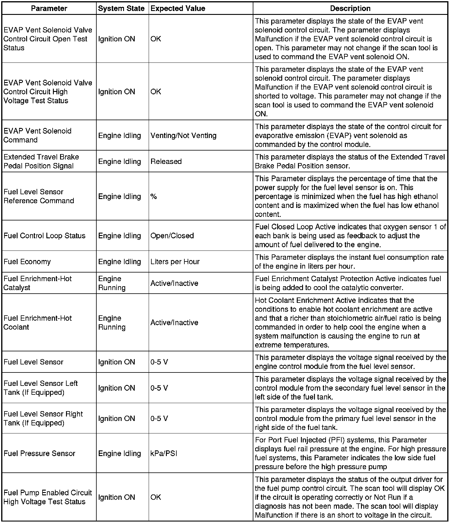 The Engine Control Module Scan Tool Data List contains all engine-related parameters that are available on the scan tool. The list is arranged in alphabetical order. A given parameter may appear in any one of the data lists, and in some cases may appear more than once, or in more than one data list in order to group certain related parameters together.