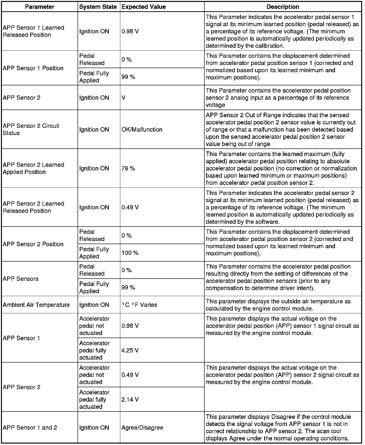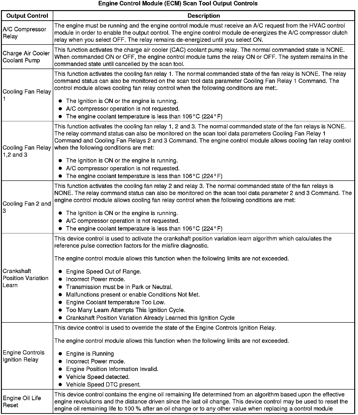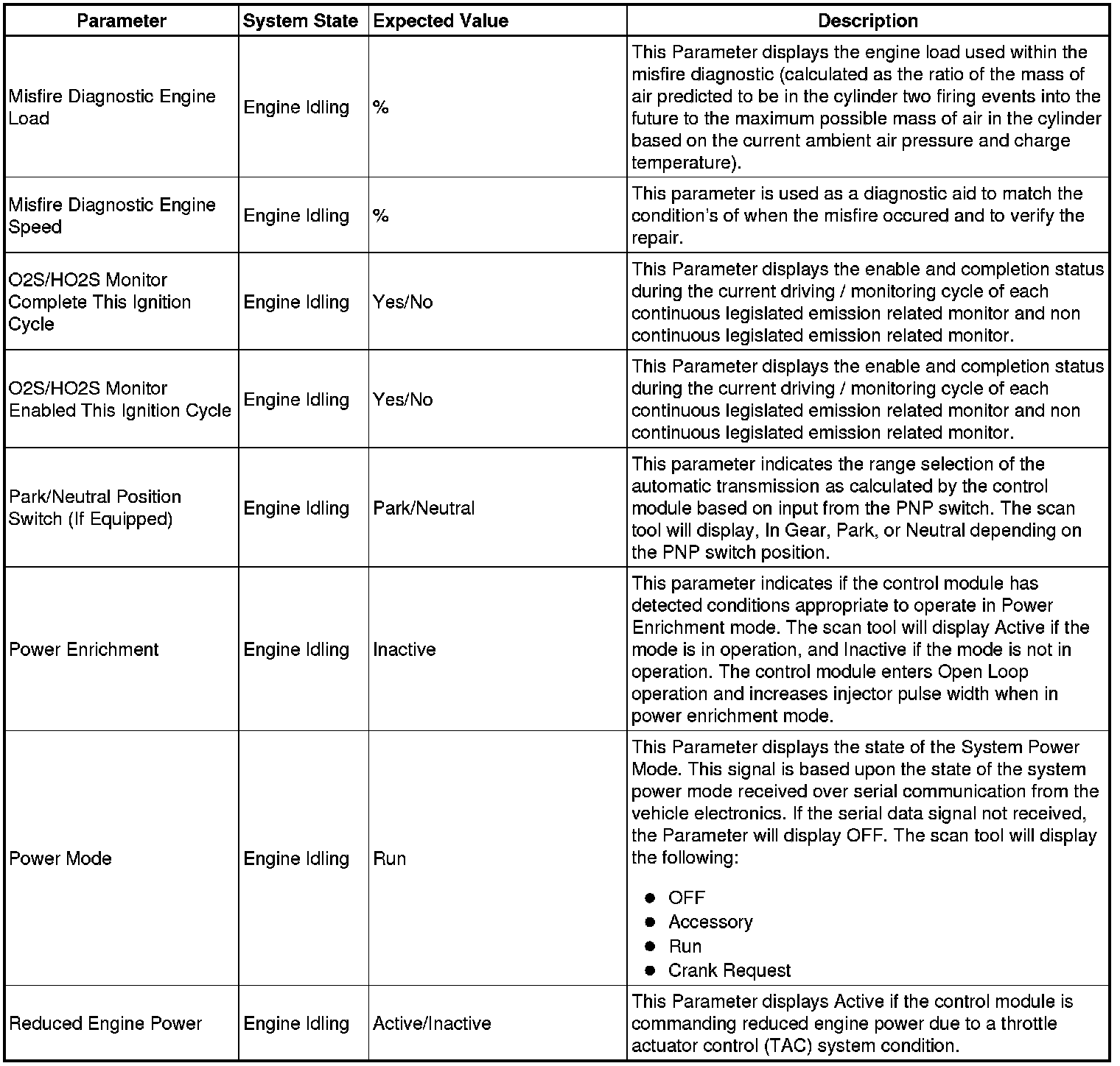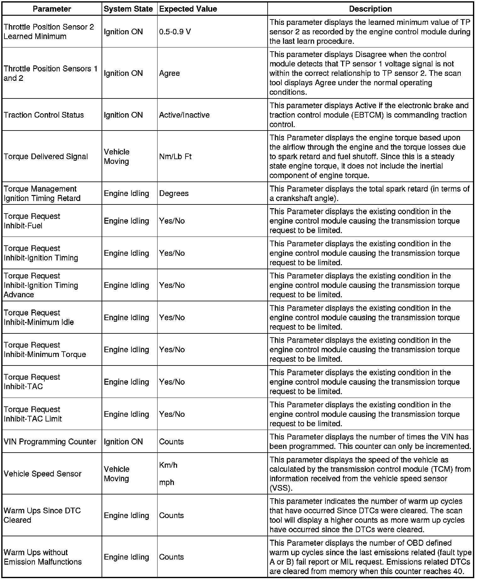 The Engine Control Module Scan Tool Data List contains all engine-related parameters that are available on the scan tool. The list is arranged in alphabetical order. A given parameter may appear in any one of the data lists, and in some cases may appear more than once, or in more than one data list in order to group certain related parameters together.