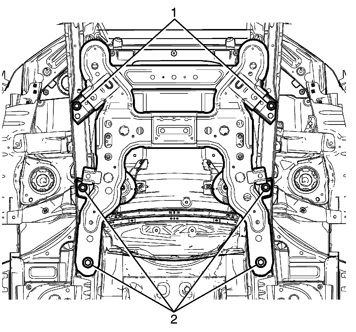 11.Install the front subframe to body retaining bolts (1) and tighten to240 N �m (178 lb ft).