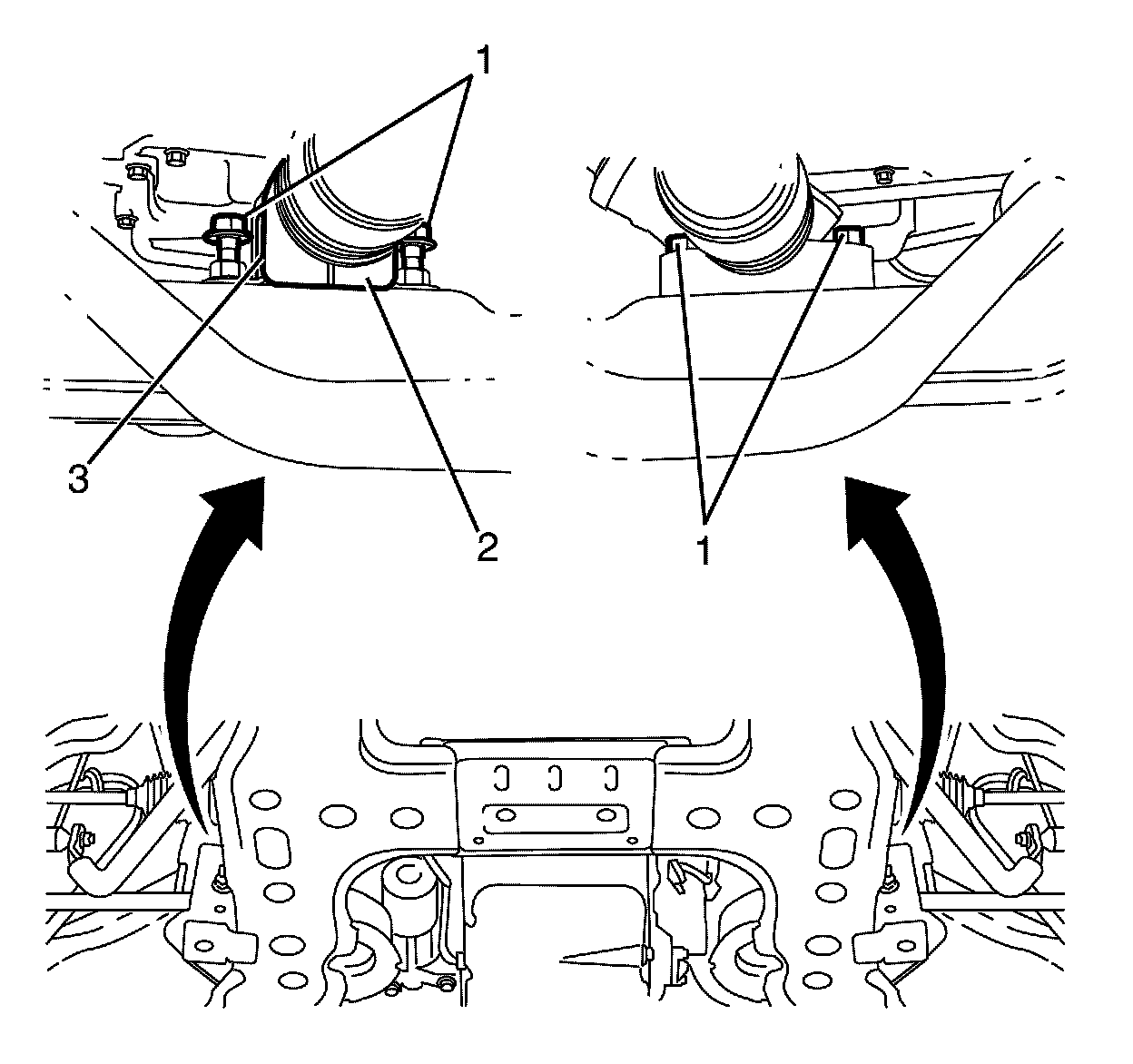 9.Install the front subframe to body retaining bolt (1) and tighten to160 N �m (118 lb ft). Repeat for opposite side.