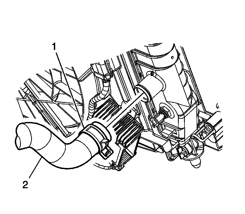3. Disengage tension on the radiator outlet hose clamp (1) at the radiator using J 38185 - Hose Clamp Pliers