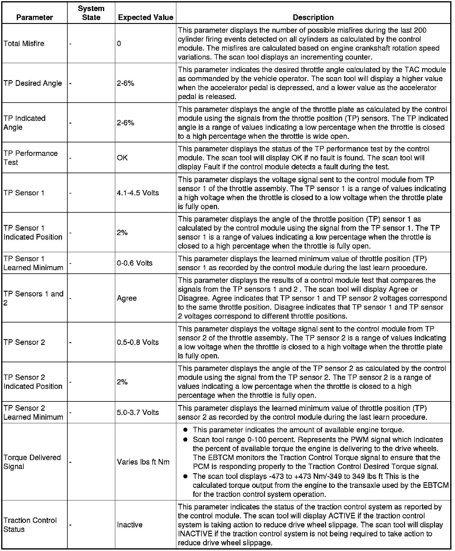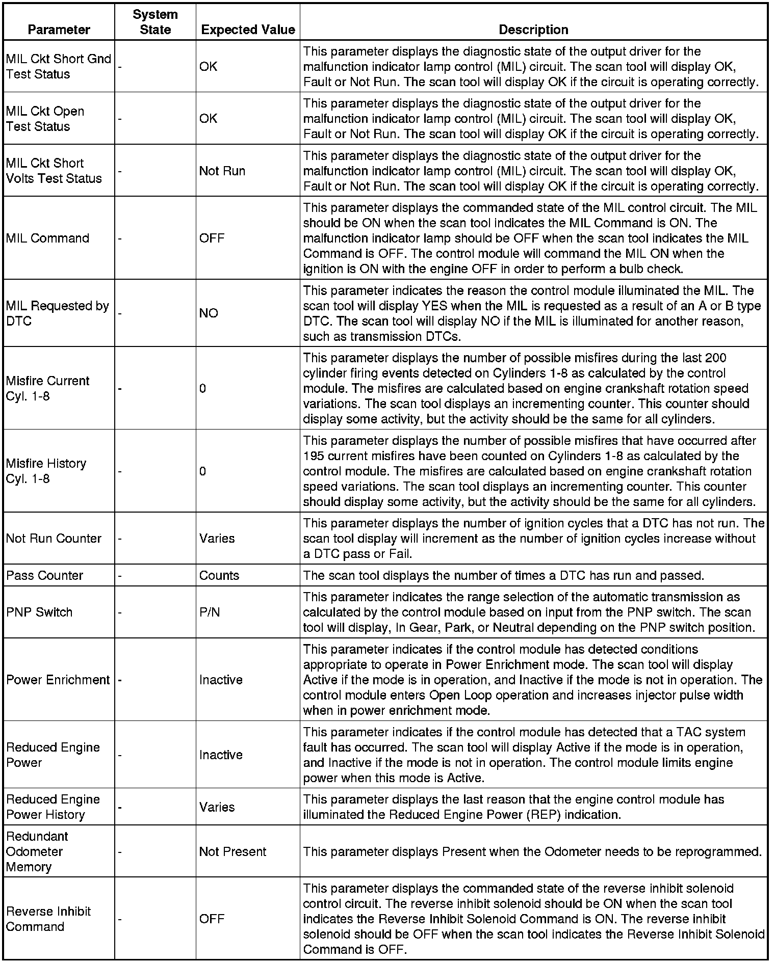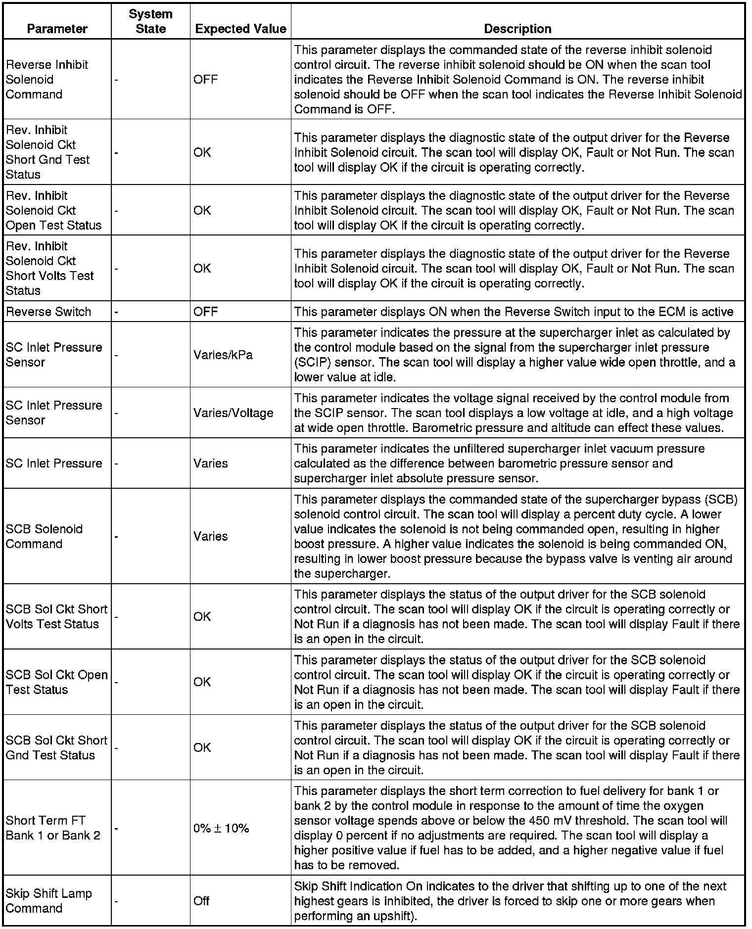 Only the parameters listed below are referenced in this service manual for use in diagnosis.