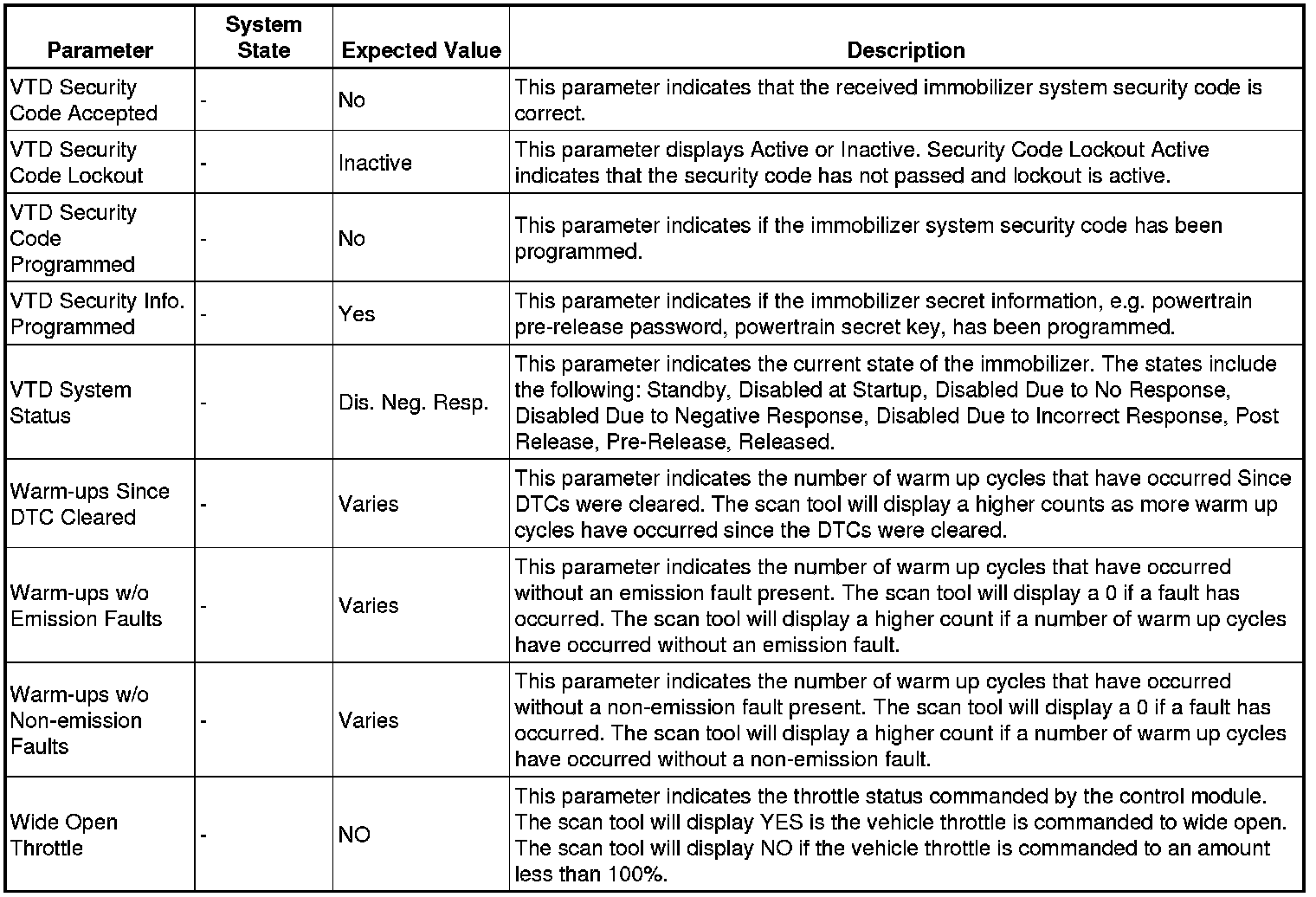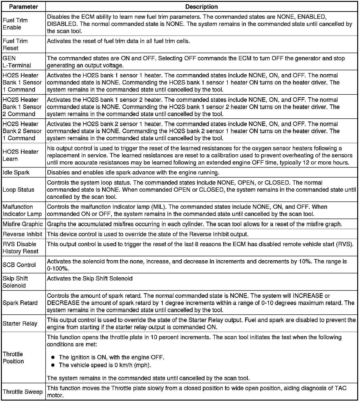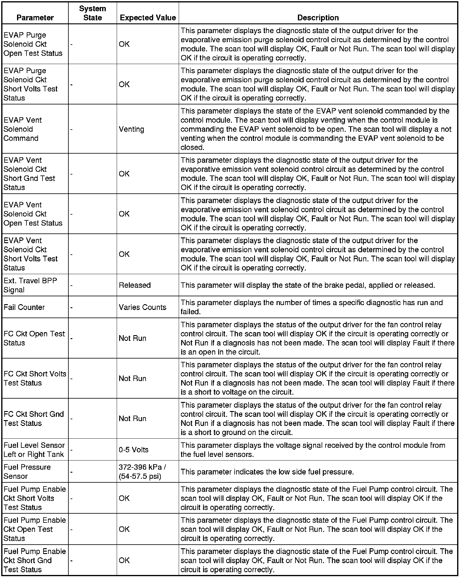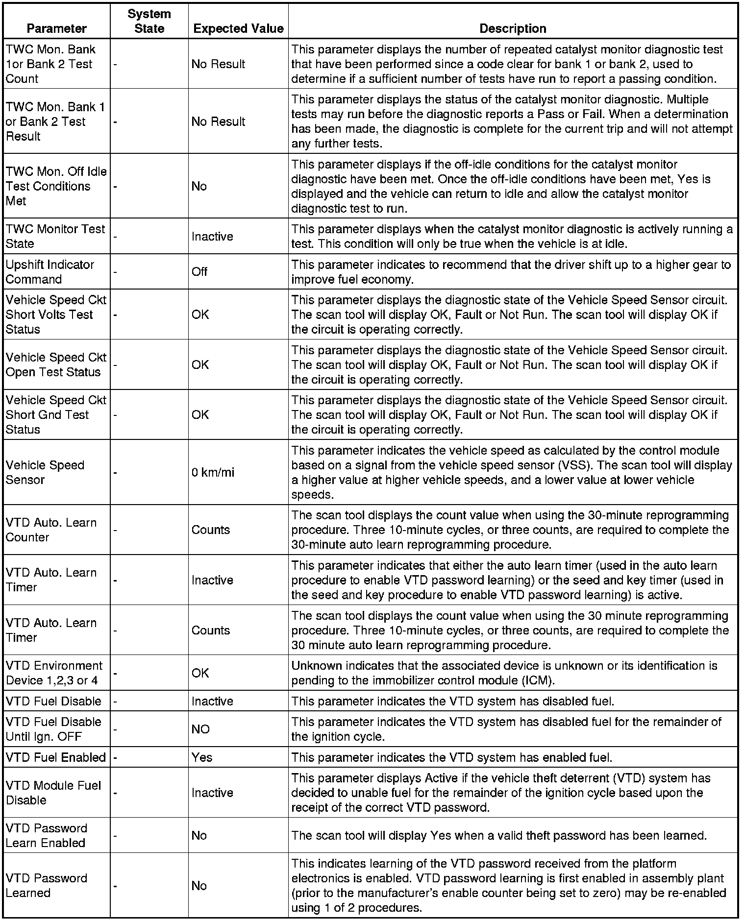Only the parameters listed below are referenced in this service manual for use in diagnosis.