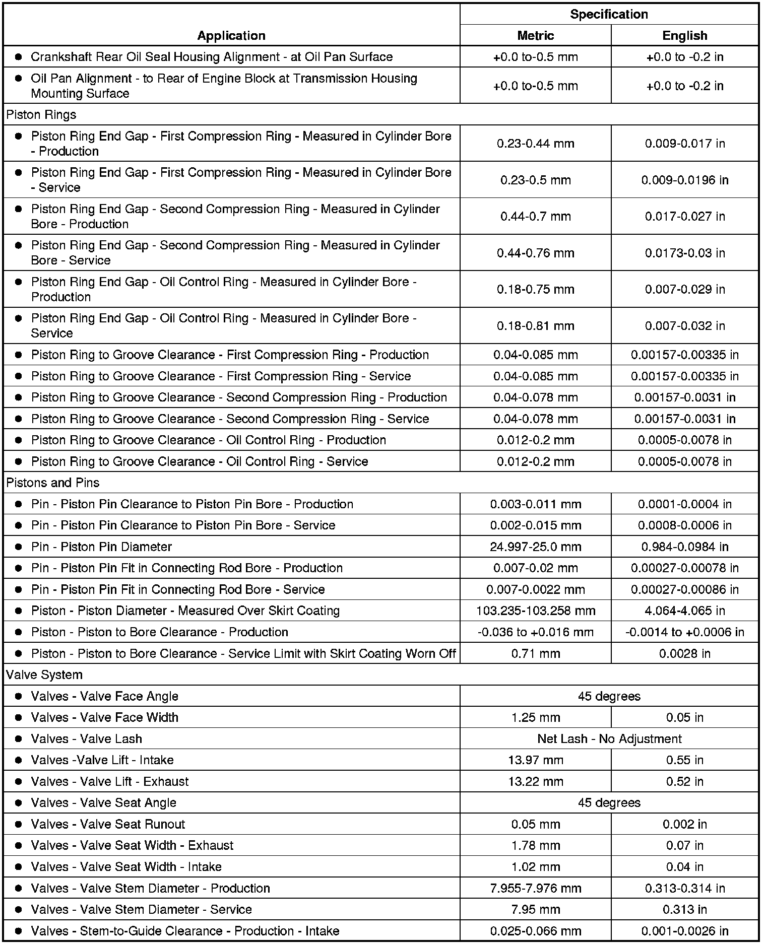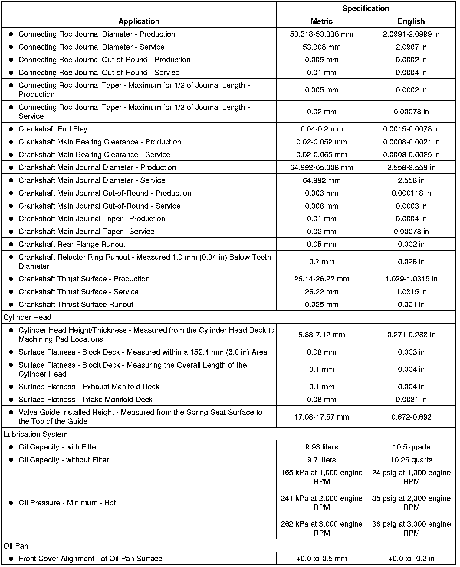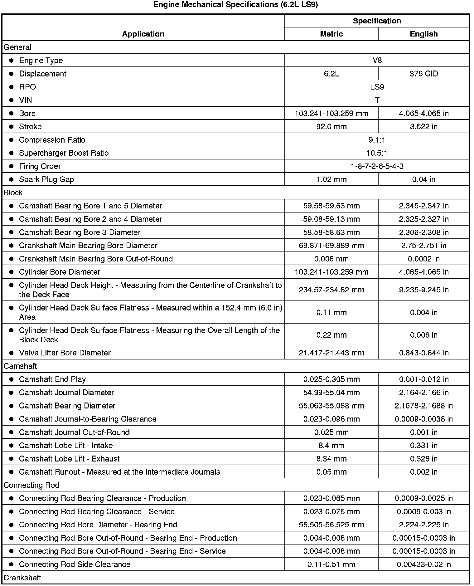 Engine Mechanical Specifications (6.2L LS9)