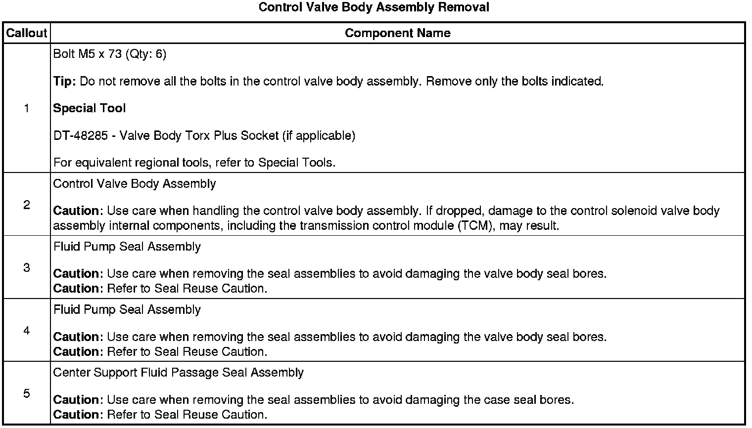 Control Valve Body Assembly Removal