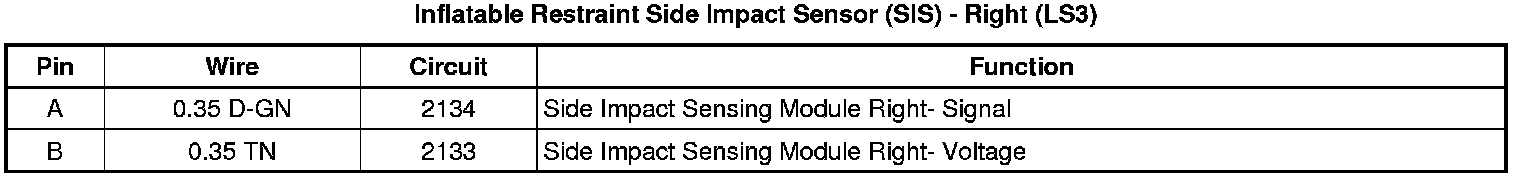 Inflatable Restraint Side Impact Sensor (SIS) - Right (LS3)