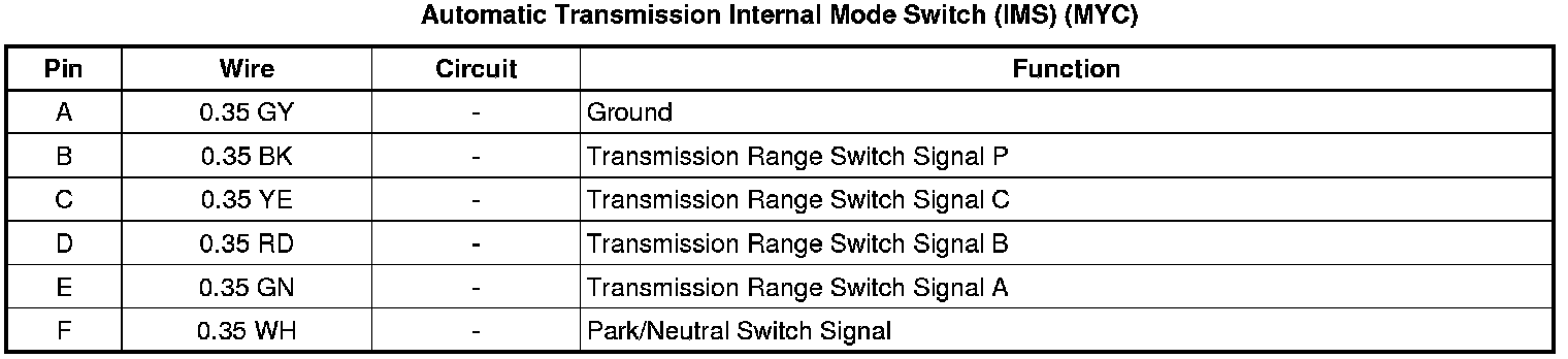 Automatic Transmission Internal Mode Switch (IMS) (MYC)
