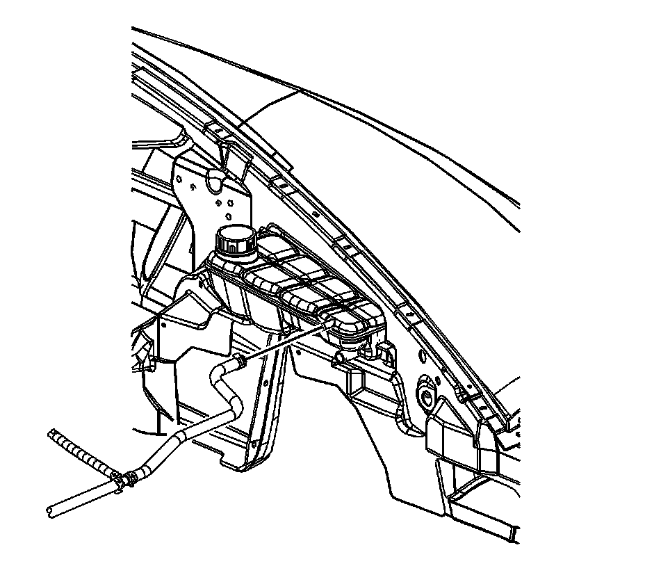 11. Engage tension on the surge tank inlet hose clamp at the radiator using J 38185 - Hose Clamp Pliers.