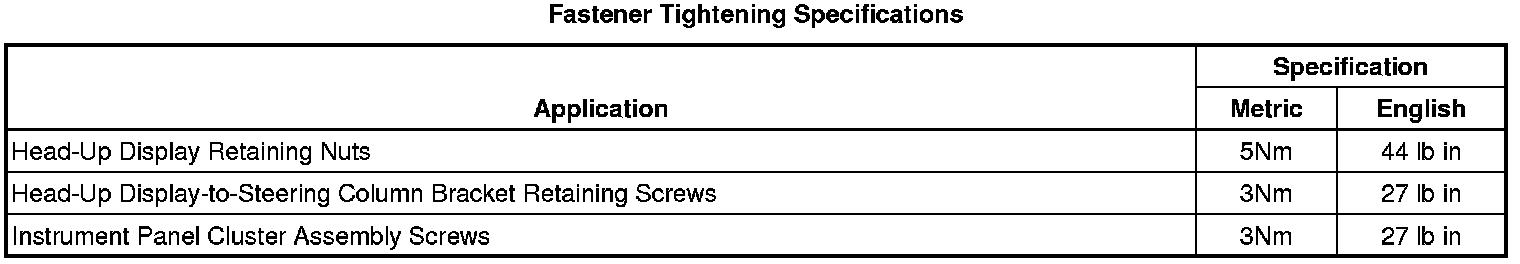 Instrument Panel, Gauges and Warning Indicators: Specifications
