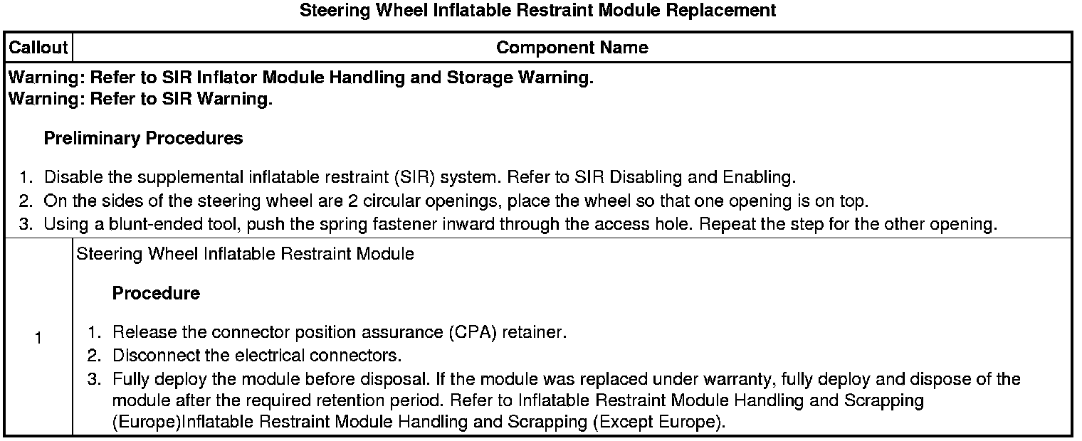 Steering Wheel Inflatable Restraint Module Replacement
